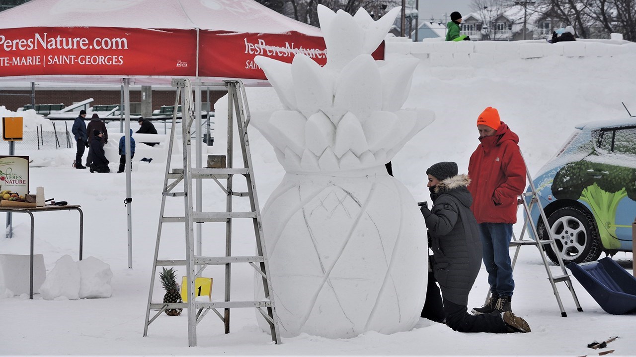 - Ananas, escargot et petit gâteau : des sculptures sur neige pour tous les goûts à St-Georges