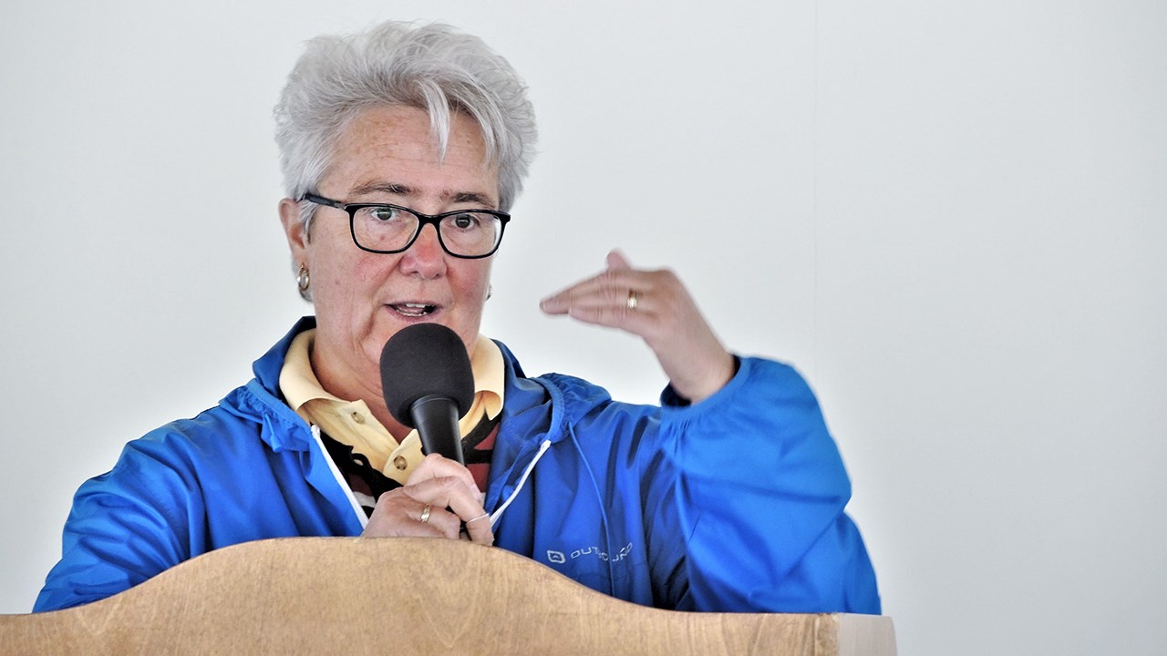 Carole Paquet, directrice du Service des loisirs et de la culture de la Ville de Saint-Georges, à la conférence de presse annonçant la programmation estivale 2018 au parc des Sept-Chutes de Saint-Georges, jeudi le 24 mai 2018.