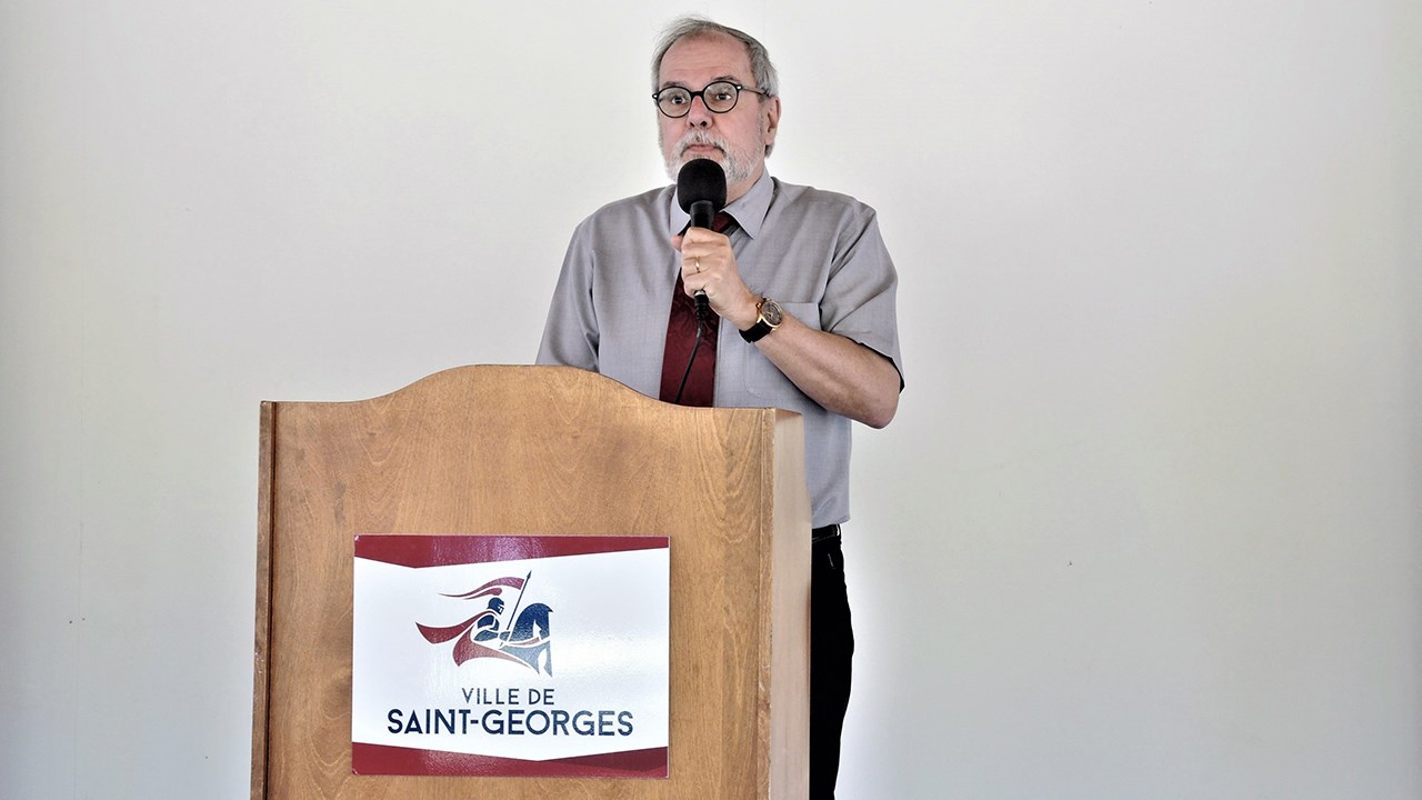Claude Morin, maire de la Ville de Saint-Georges, à la conférence de presse annonçant la programmation estivale 2018 au parc des Sept-Chutes de Saint-Georges, jeudi le 24 mai 2018.