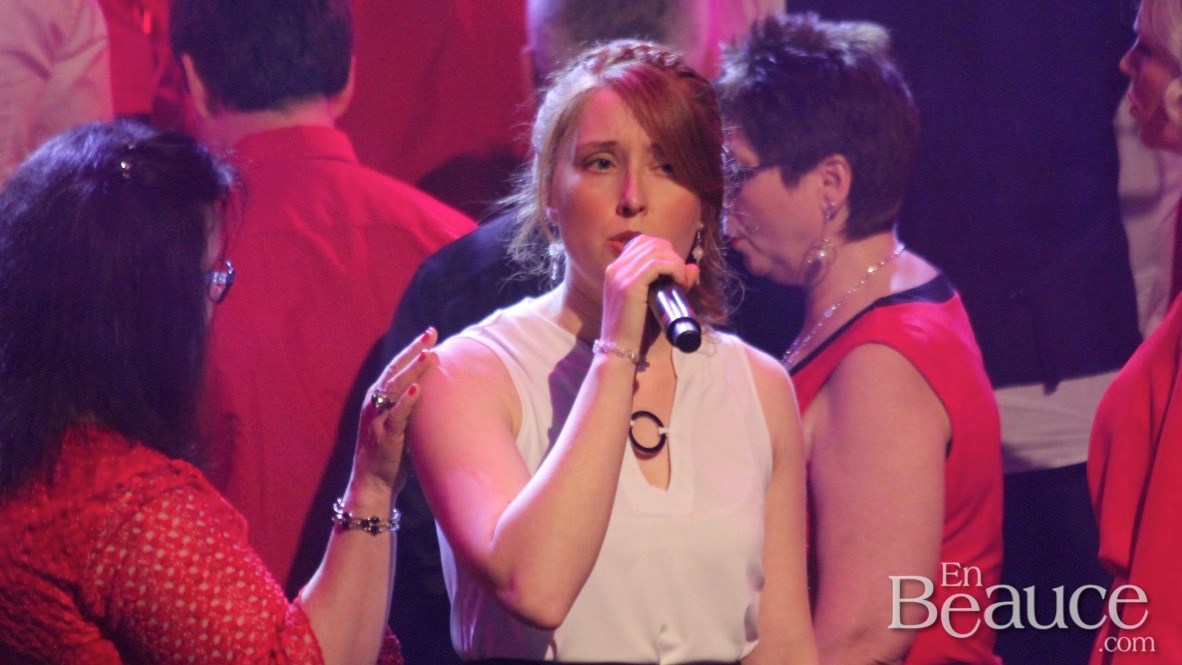 Les pièces suivantes mettaient en vedette des solistes aux voix exquises. Pascale Veilleux, une habituée la chorale, a interprété les pièces « L’escalier » et « Le temps d’aimer » avec Catherine Côté. De son côté, Jessica Boutin a livré une version touchante de la chanson « C’est écrit » de Francis Cabrel.