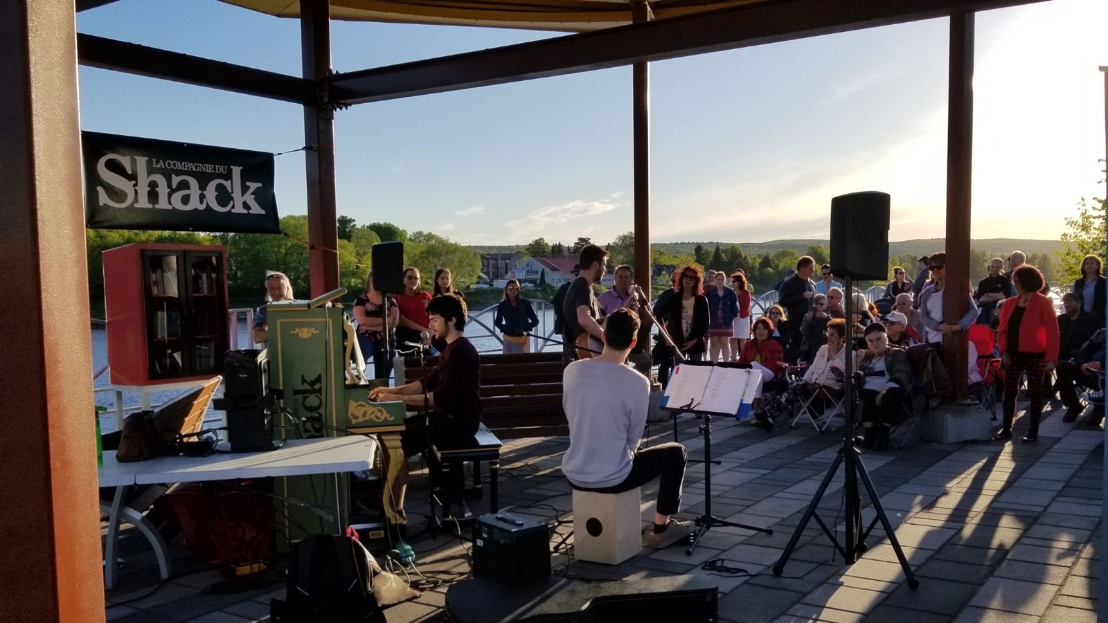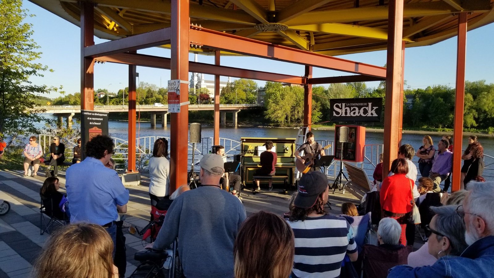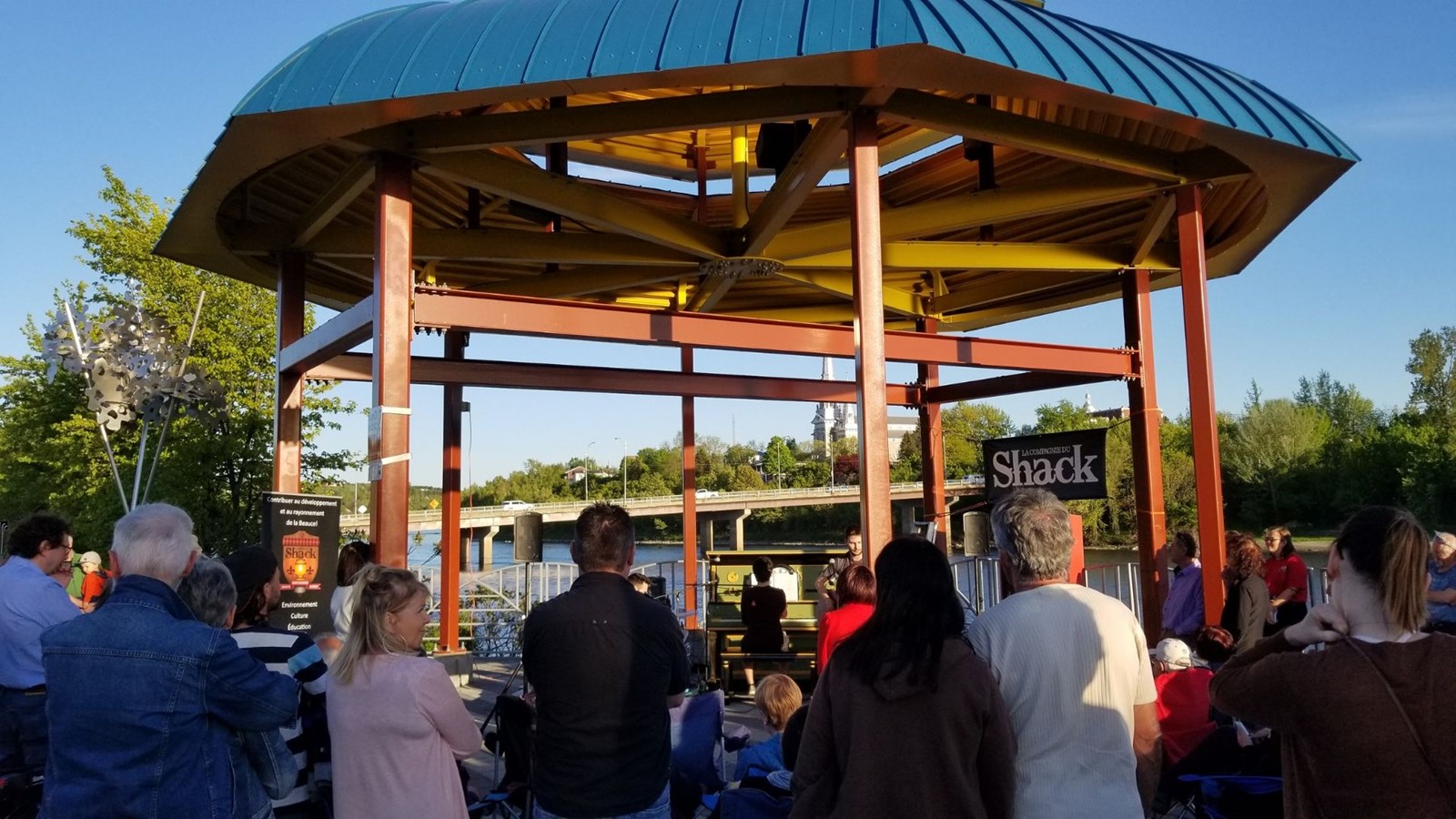 C’est sous un beau soleil et une ambiance festive que la Compagnie du Shack a dévoilé pour le nouveau piano urbain sous la rotonde de la promenade Redmond de Saint-Georges hier soir. Une quarantaine de personnes sont venues y assister.