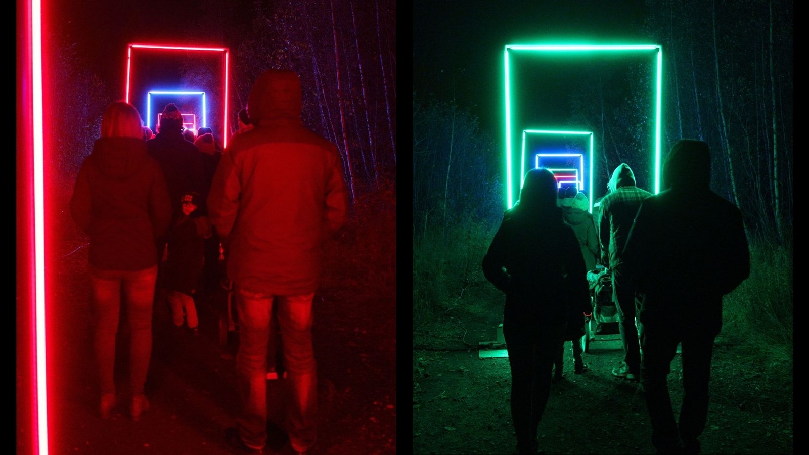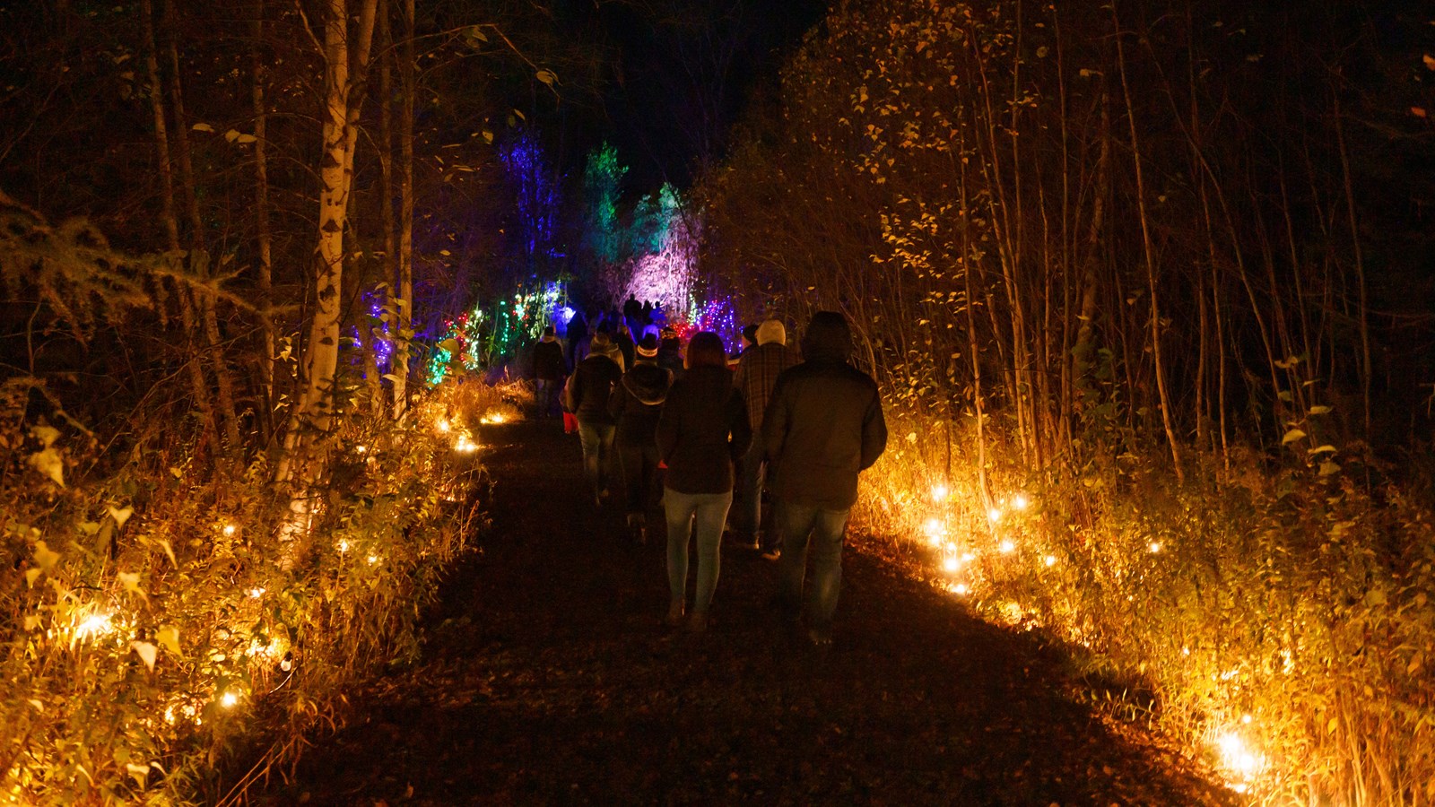 Ainsi, les citoyens, souvent accompagnés de leurs enfants, ont pu se promener sur le sentier nature éclairé sur le thème d'Halloween entre 18 h et 22 h les deux soirs. Des guirlandes lumineuses, des jeux de néons et de la fumée étaient installées.