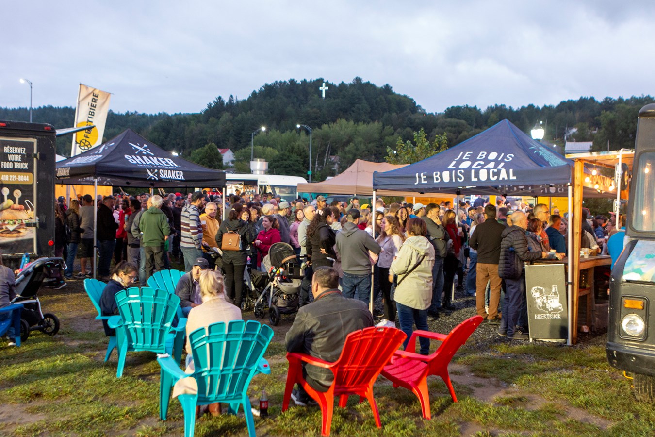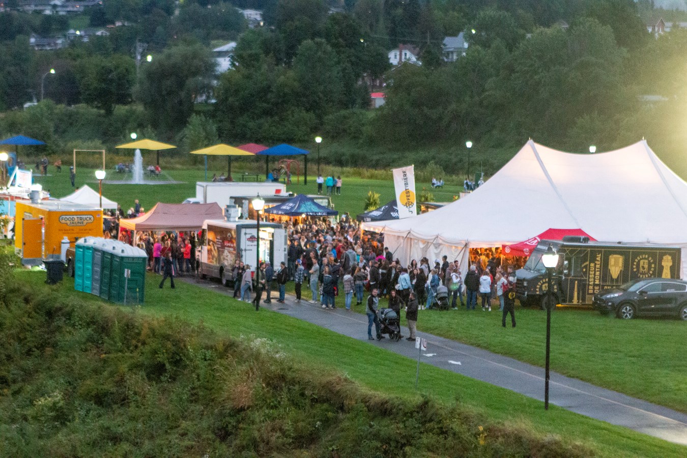 Il y avait trois bars sur le site, deux camions avec de la bière de microbrasserie et un bar avec des canettes de microbrasserie. Le tout se déroulait sur un fond musical.