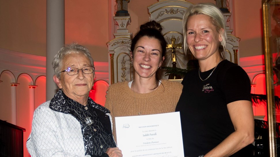 Ainsi, c’est Judith Purcell des Créations Jam’s (Saint-Georges) qui a été désignée par le public! « C’est toujours un plaisir de participer au Salon ici à Saint-Georges. Les visiteurs, les autres exposants et toute l’équipe d’organisateurs et de bénévoles sont tous extrêmement chaleureux, la passion se ressent! Je ne m’attendais pas du tout à être choisie pour la prochaine présidence d’honneur! C’est une belle reconnaissance et c’est très flatteur. C’est la preuve que mon travail ne passe pas inaperçu! » s’est exclamé Mme Purcell.