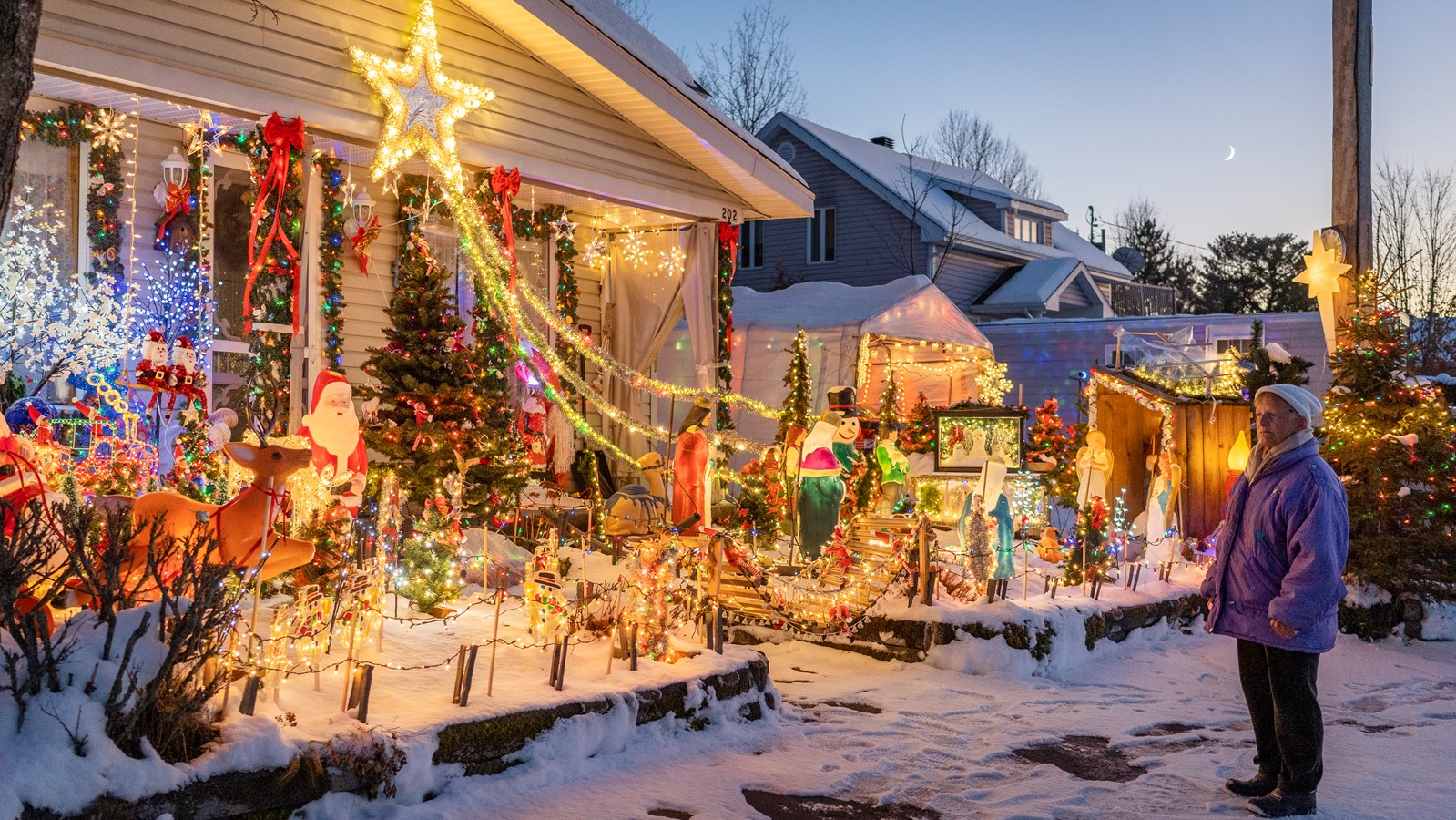Depuis qu'elle habite la route de la Station à Saint-Victor, Pierrette Cloutier-Jolicoeur s'applique à décorer l'avant de sa maison pour les Fêtes de Noël. Ça fait 40 ans.