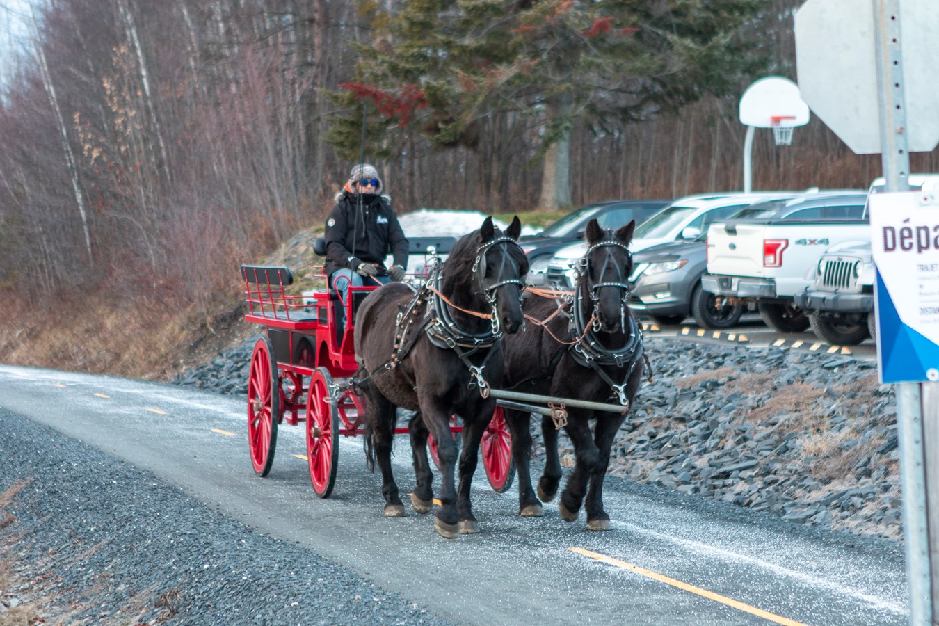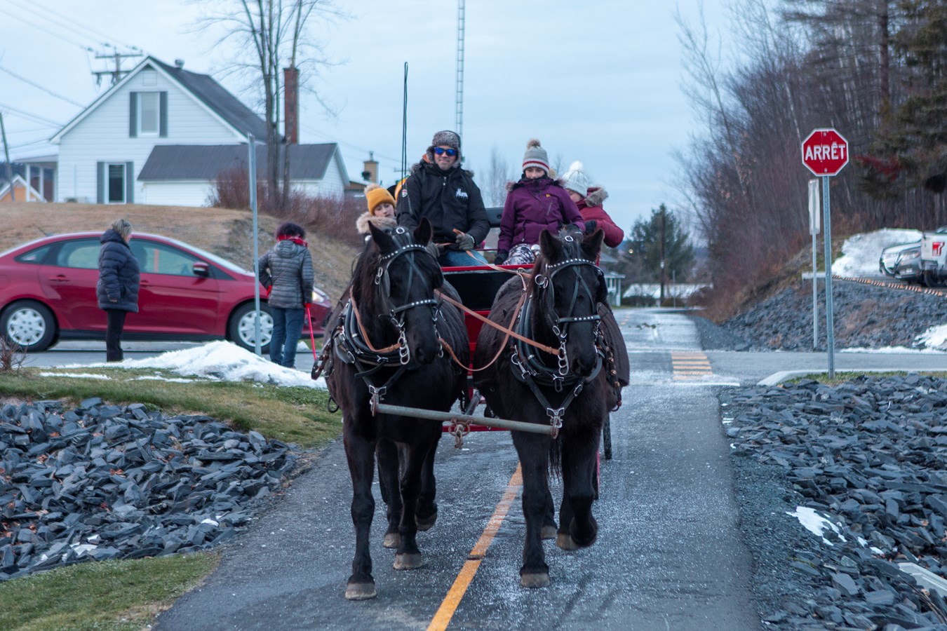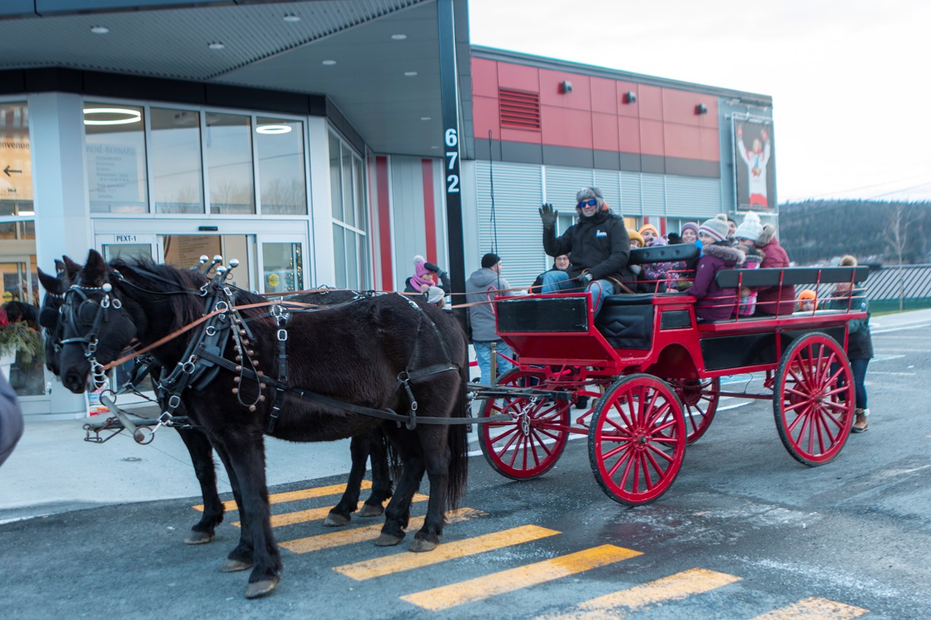 Le Père Noël est apparu en calèche, en fin d'après-midi, qu'il a laissée pour faire des tours gratuits dans le secteur.