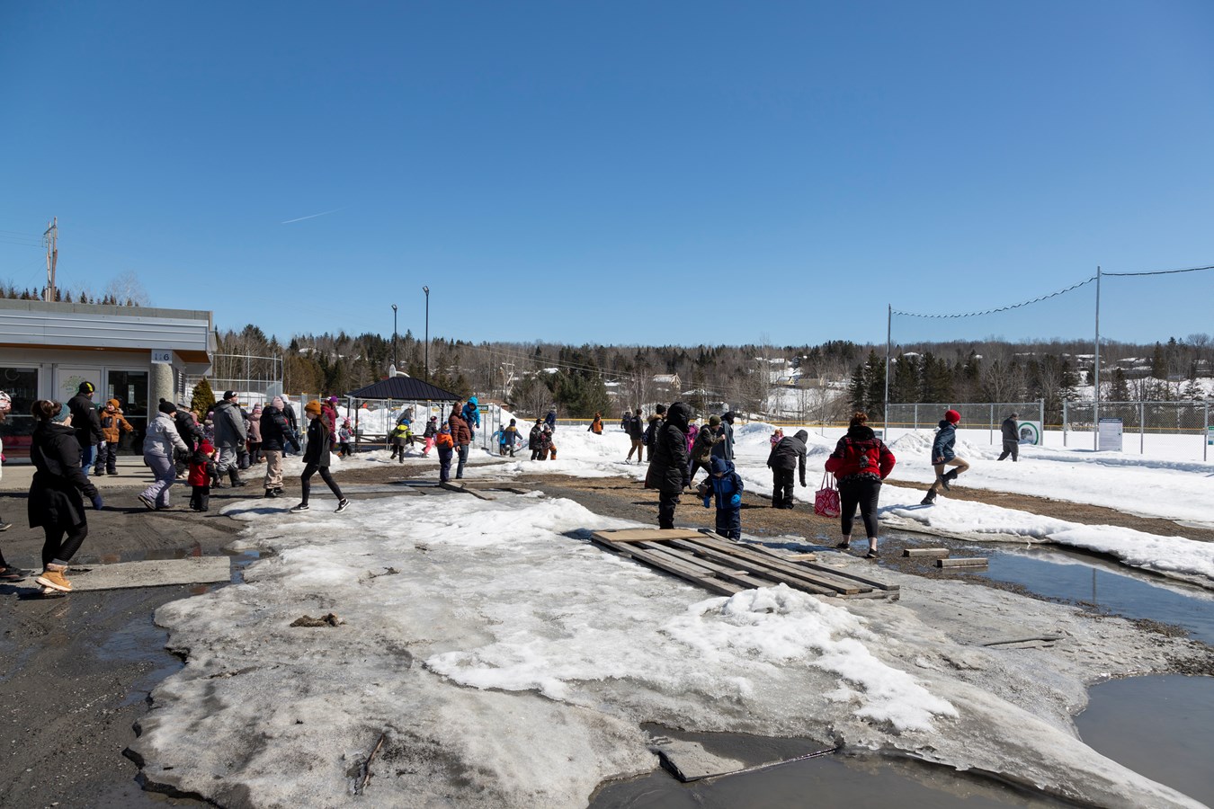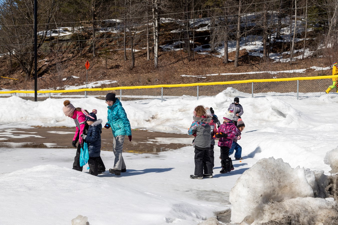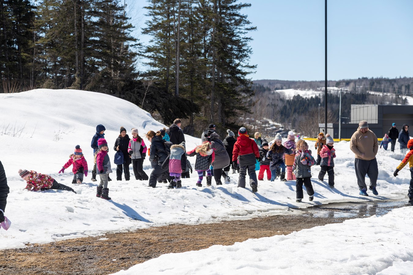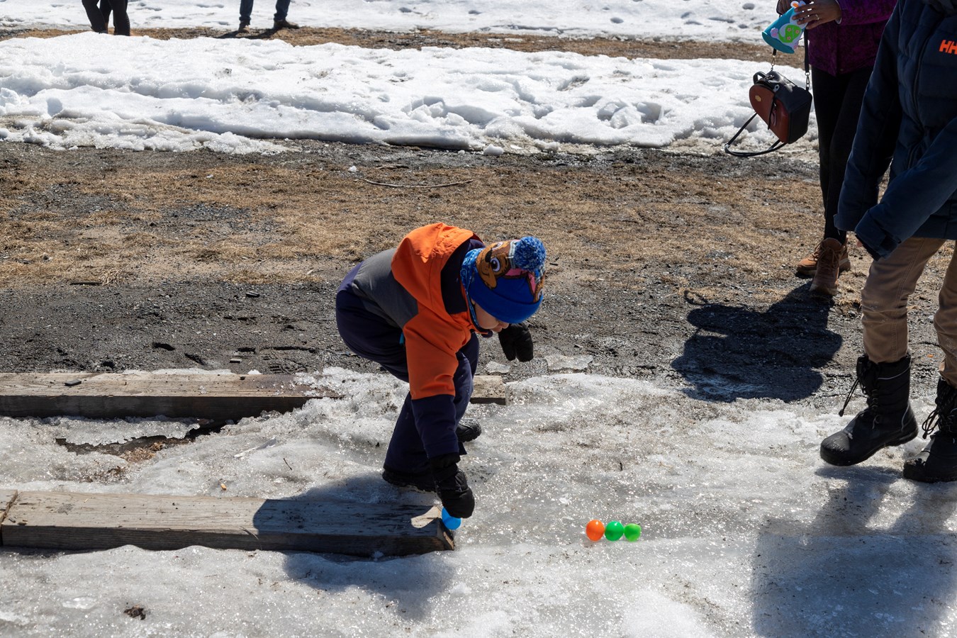 Les adultes ont aussi retrouvé leur coeur d'enfant en cette journée printanière. Les participants pouvaient ensuite recevoir des gâteries chocolatées, participer à des ateliers de Pâques et déguster de la tire sur la neige.