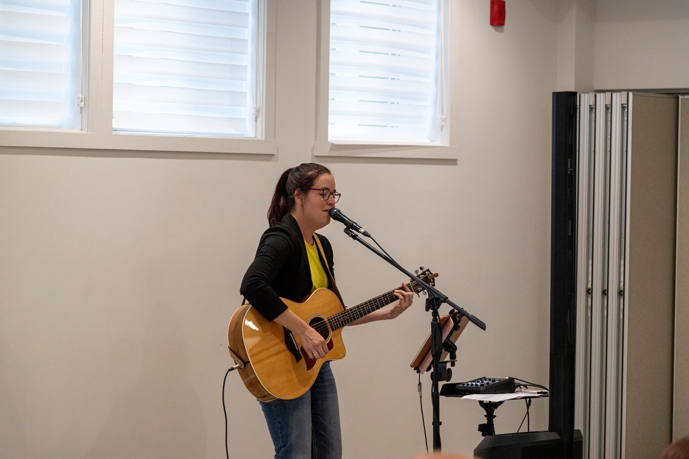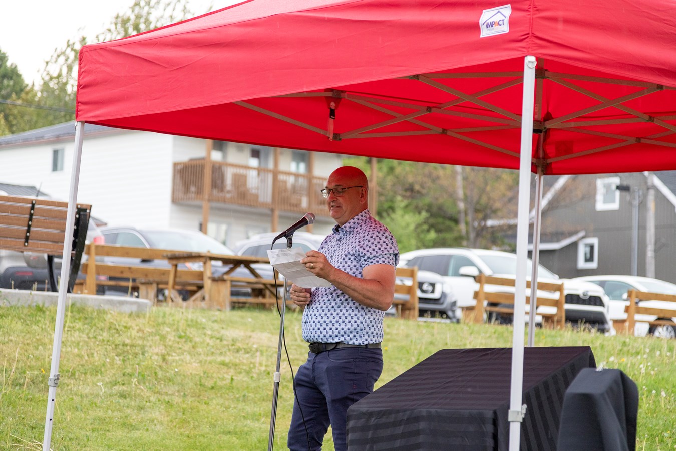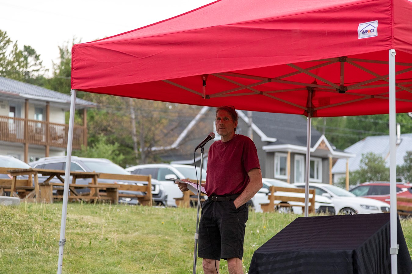 Après avoir planté l'arbre, Karine Lauzon a ouvert les jeudis dorés 2023 à l'intérieur du bâtiment, en raison des conditions météorologiques.