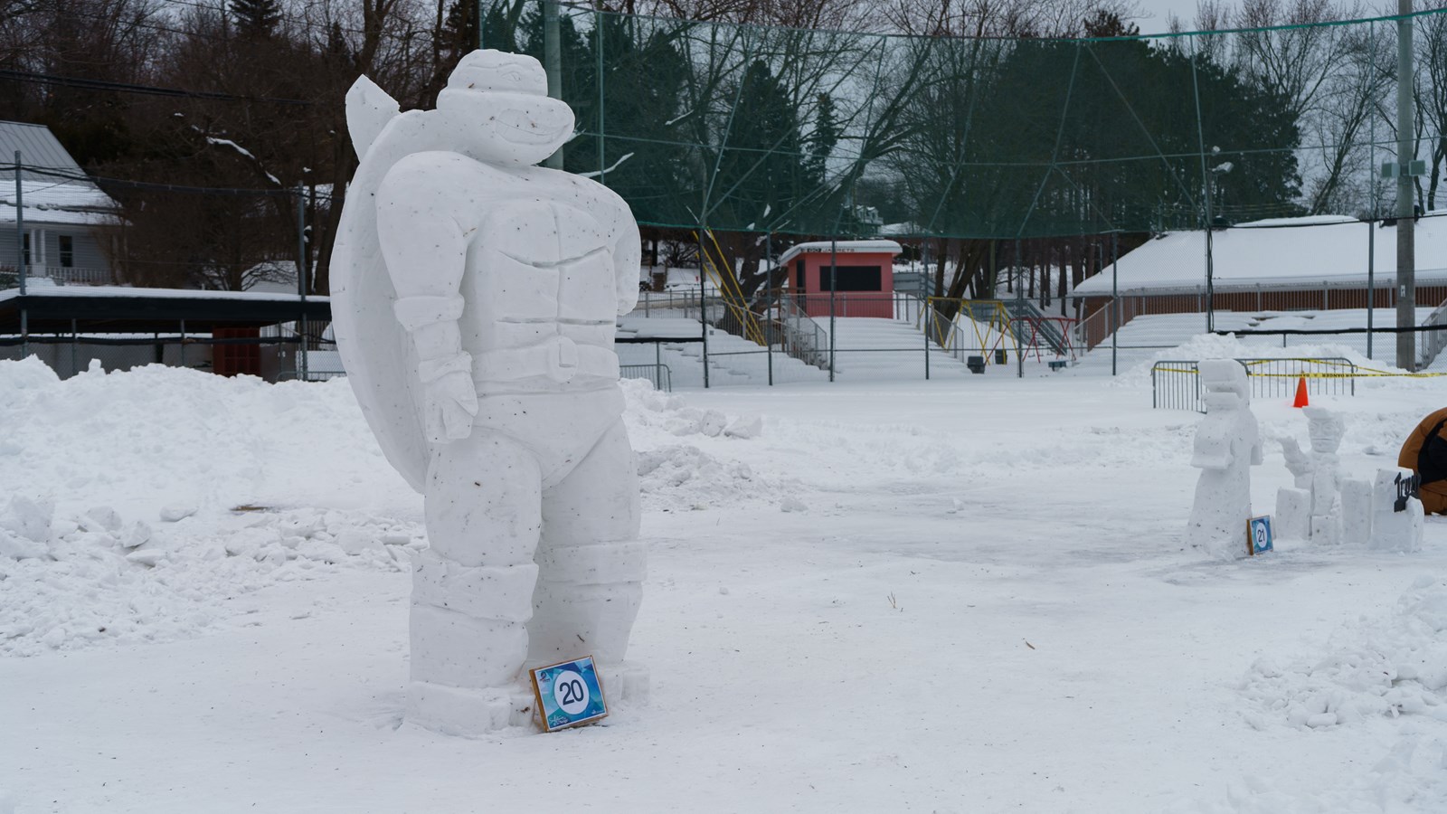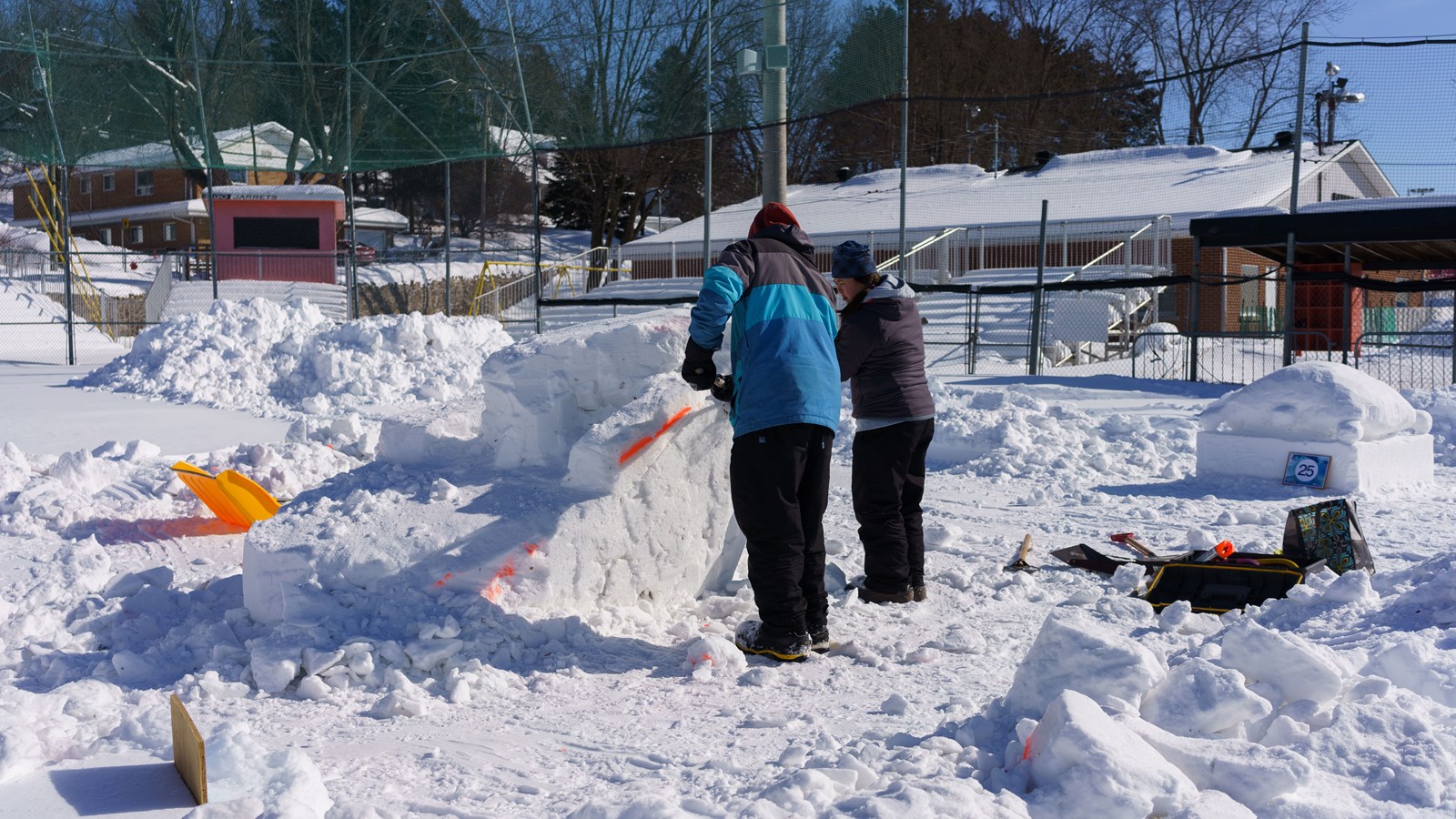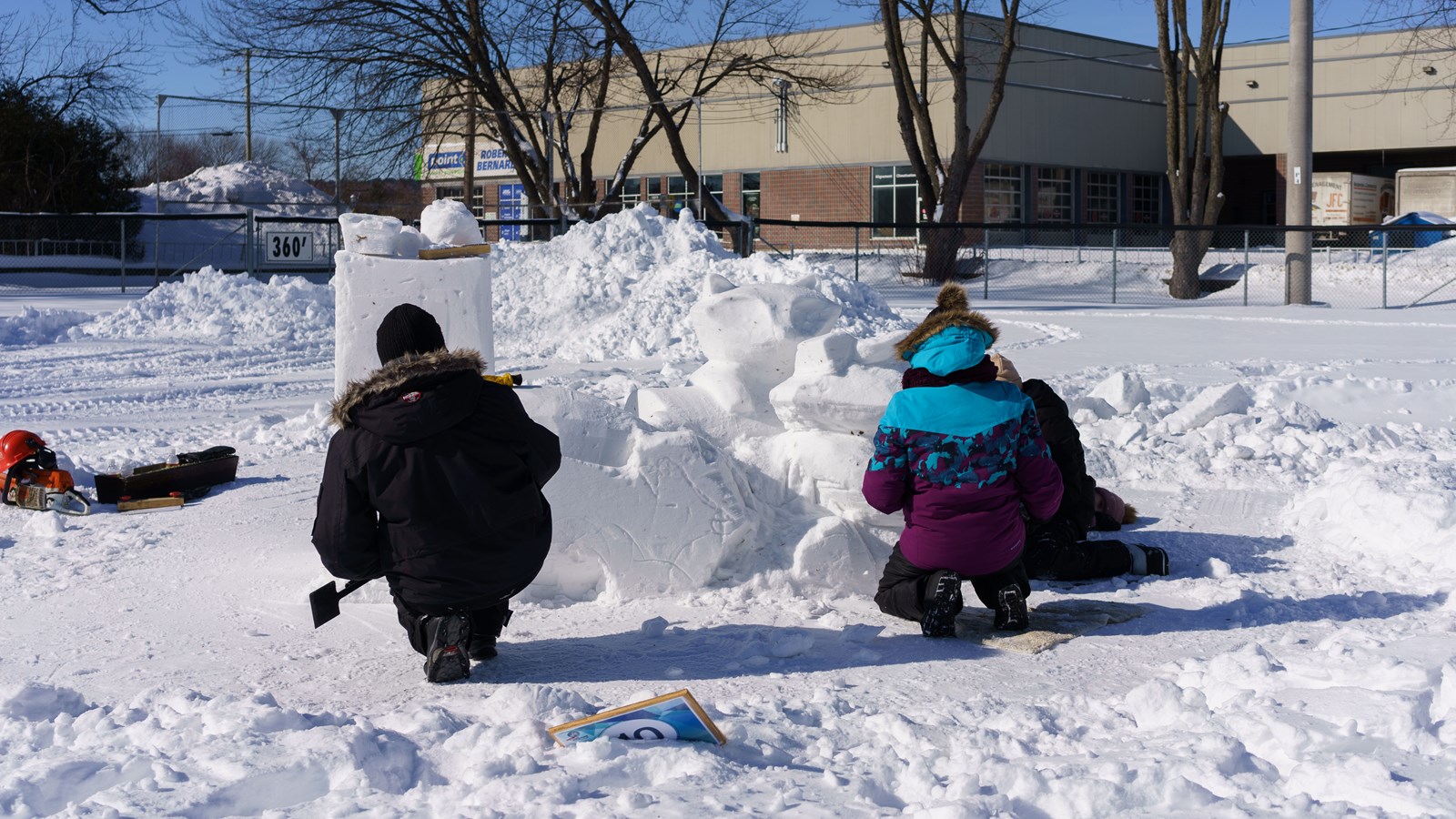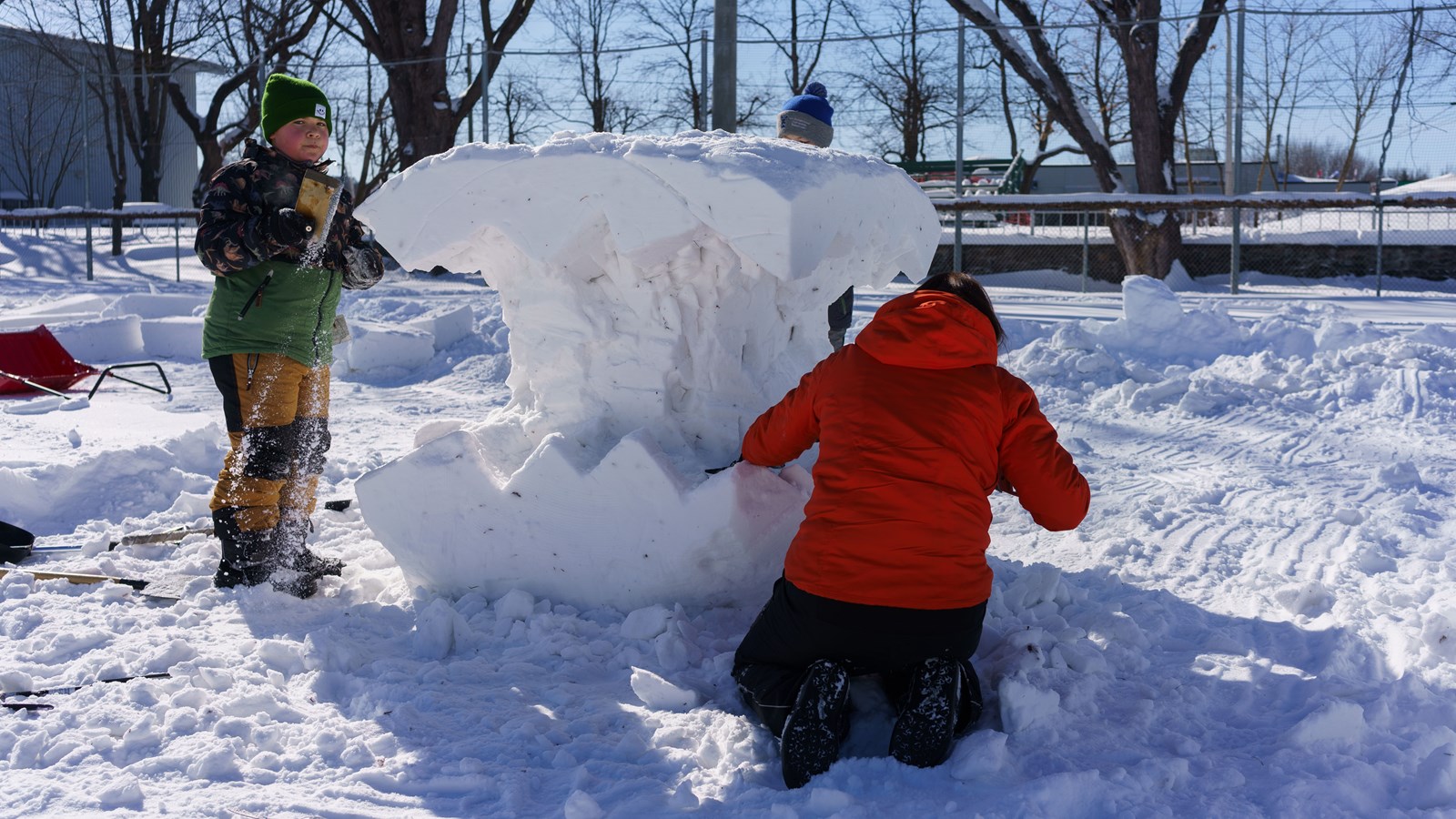 Plusieurs Beaucerons ont travaillé fort durant la fin de semaine pour réaliser des sculptures sur neige dans la cour arrière du Centre sportif Lacroix-Dutil à Saint-Georges.