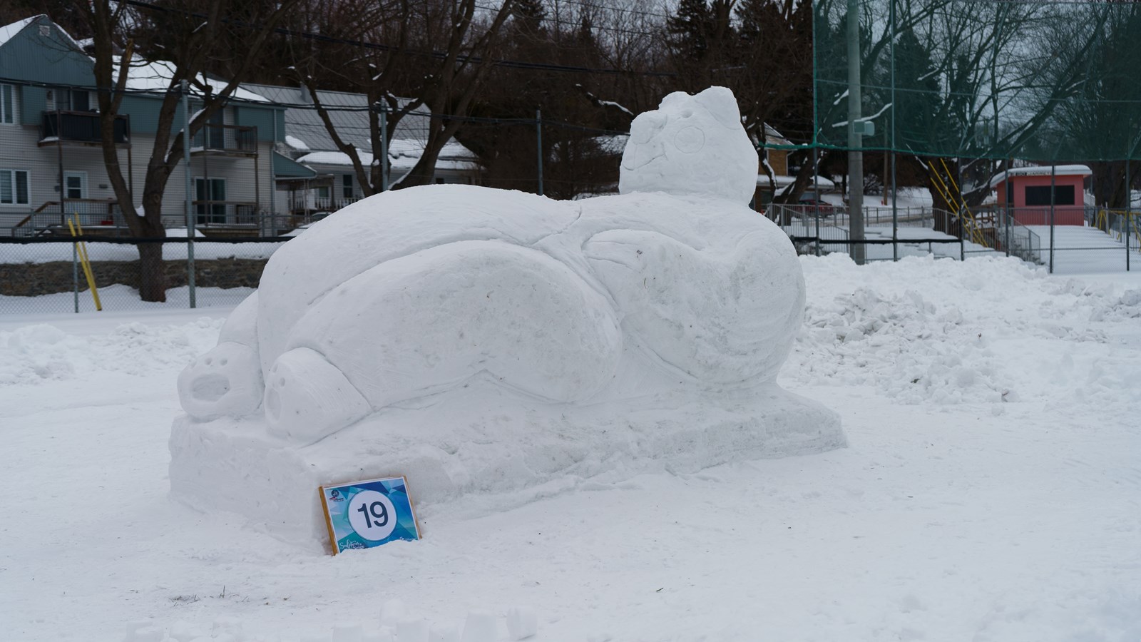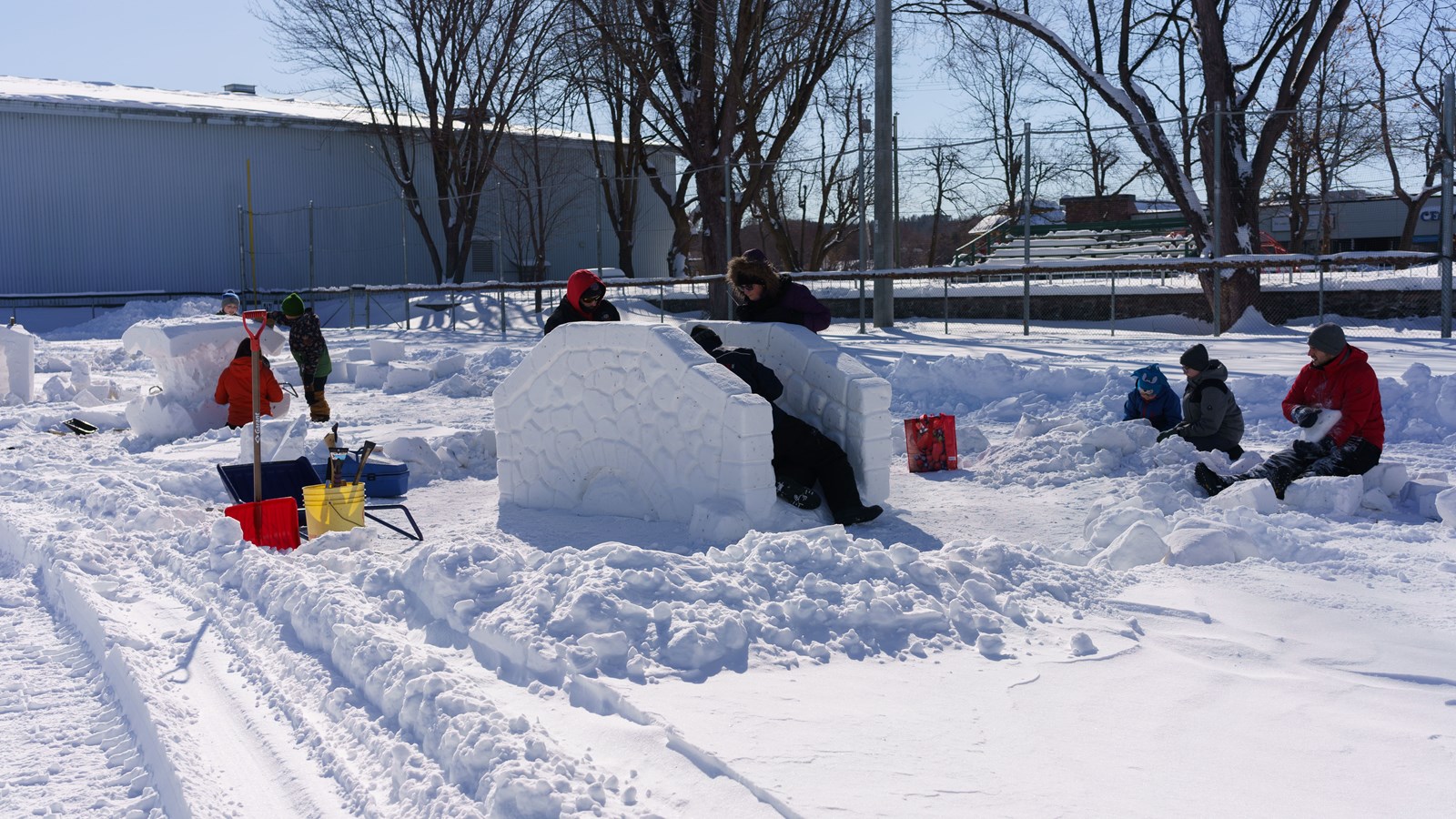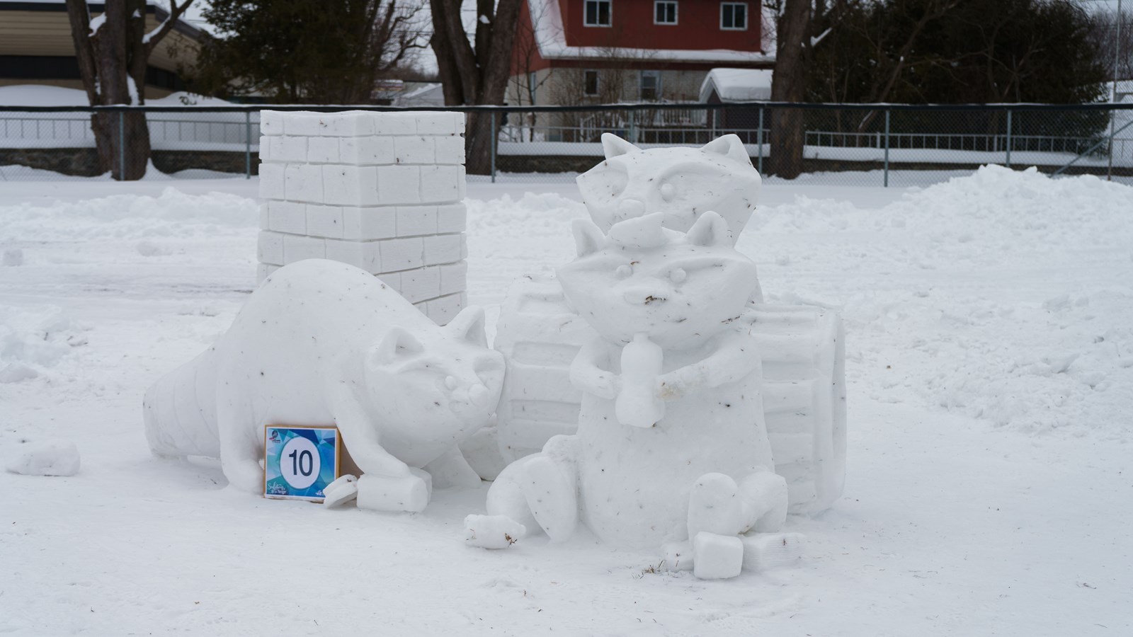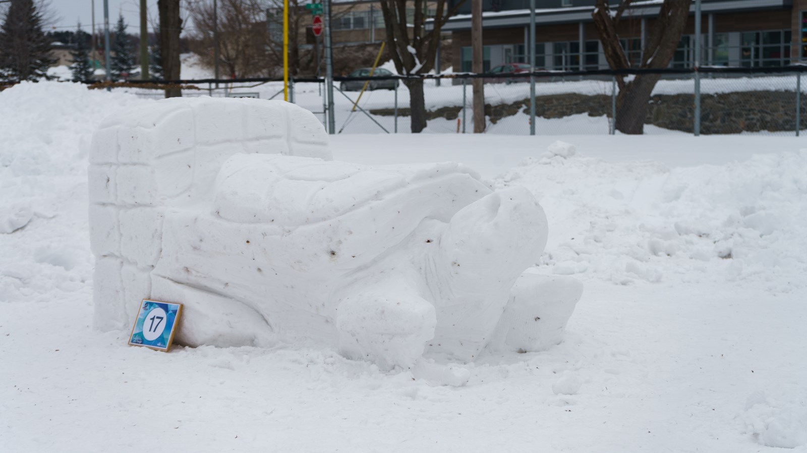 Plusieurs Beaucerons ont travaillé fort durant la fin de semaine pour réaliser des sculptures sur neige dans la cour arrière du Centre sportif Lacroix-Dutil à Saint-Georges.