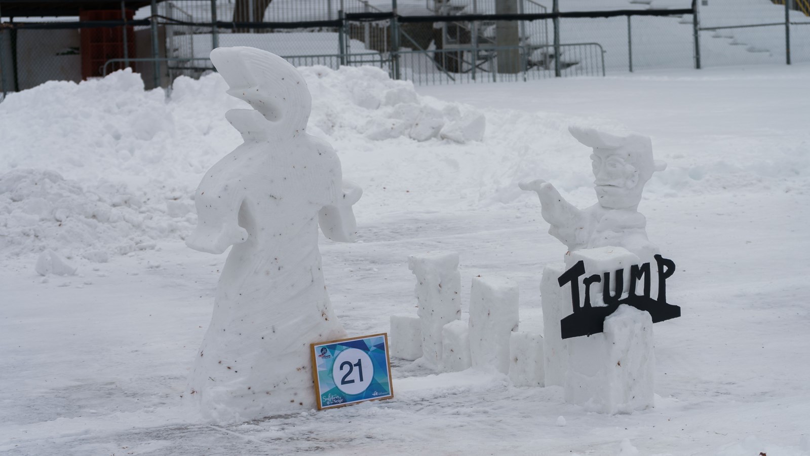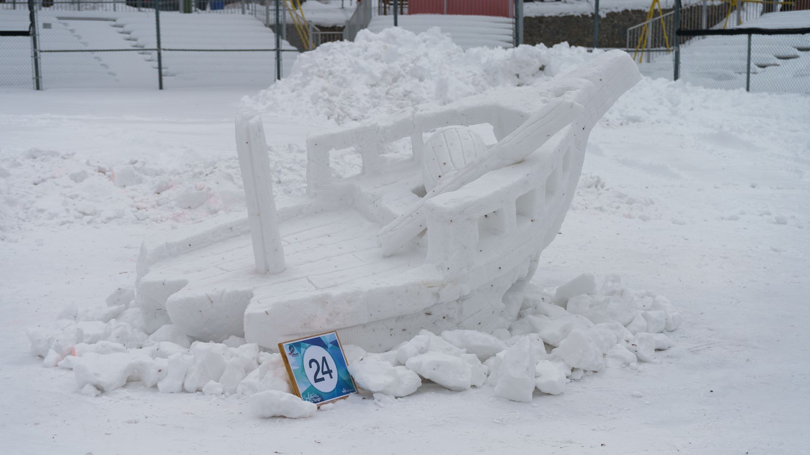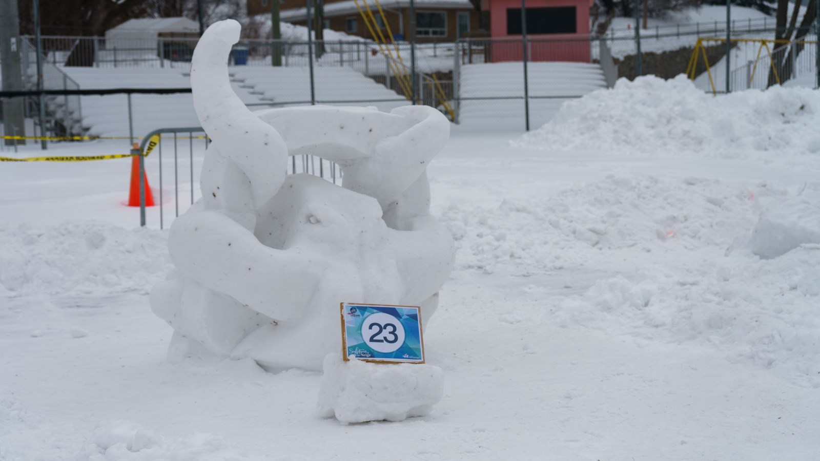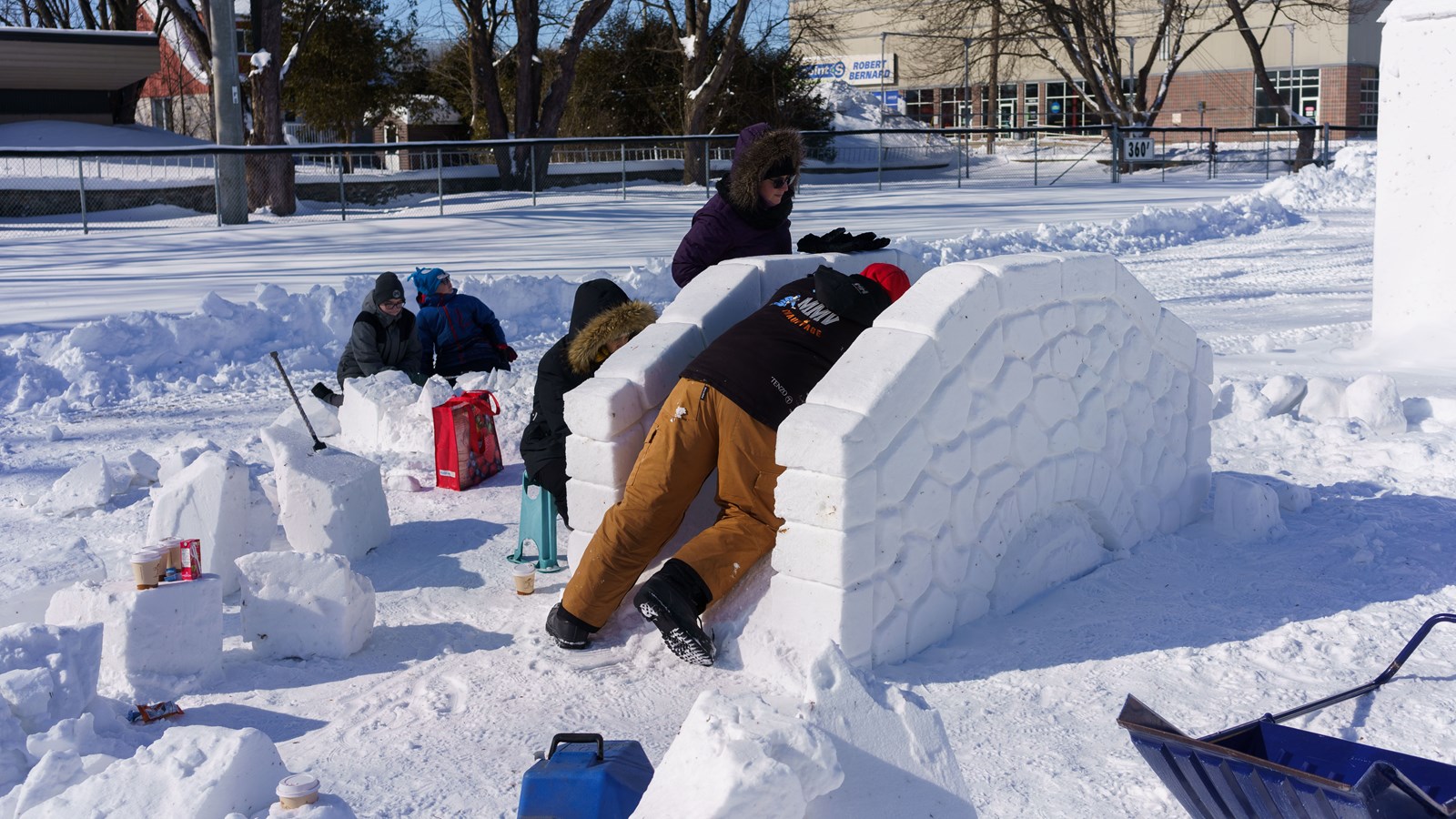 Plusieurs Beaucerons ont travaillé fort durant la fin de semaine pour réaliser des sculptures sur neige dans la cour arrière du Centre sportif Lacroix-Dutil à Saint-Georges.