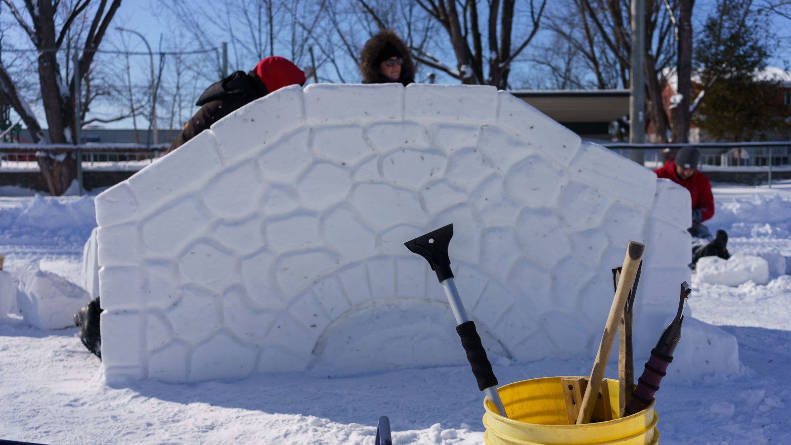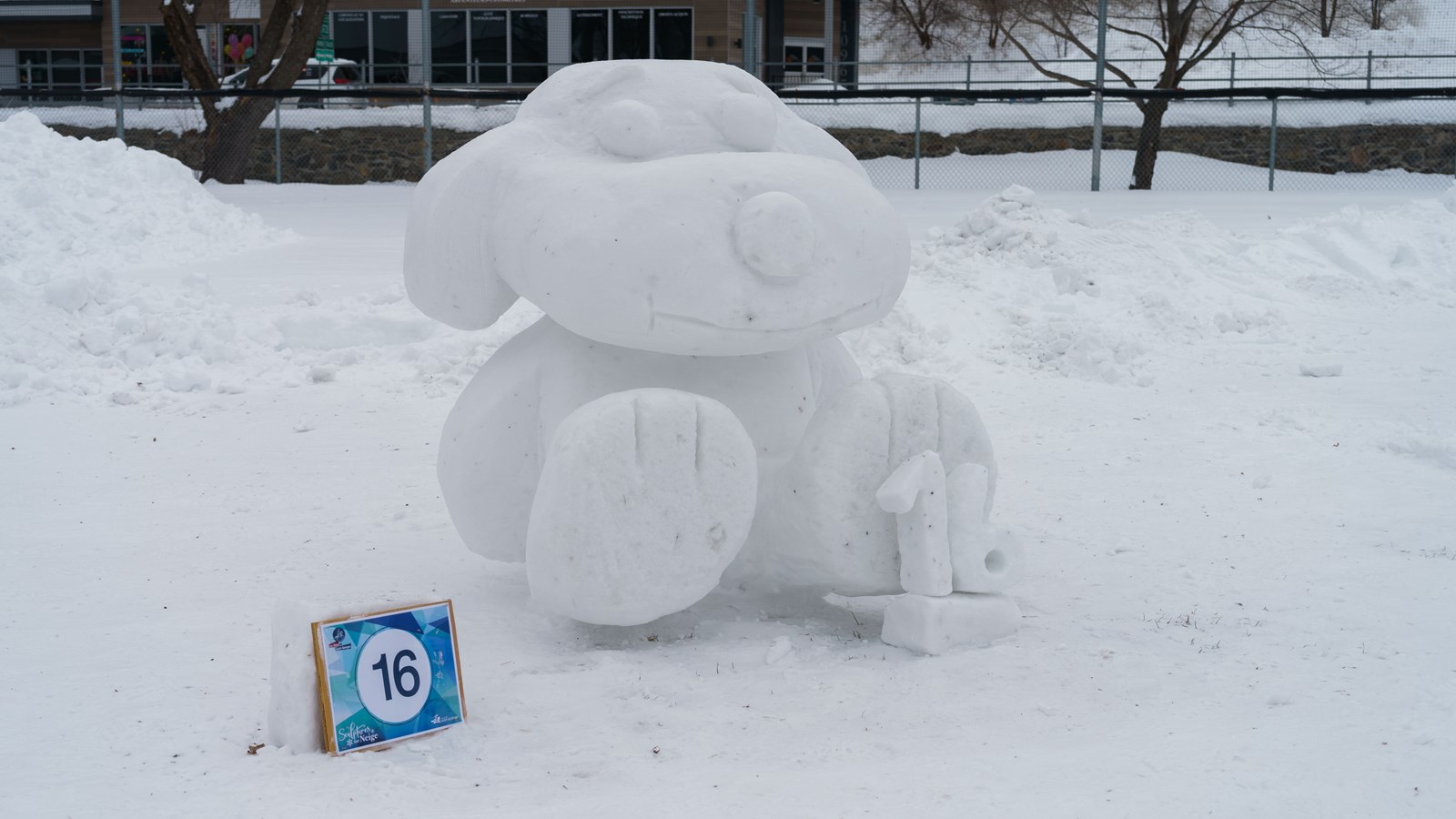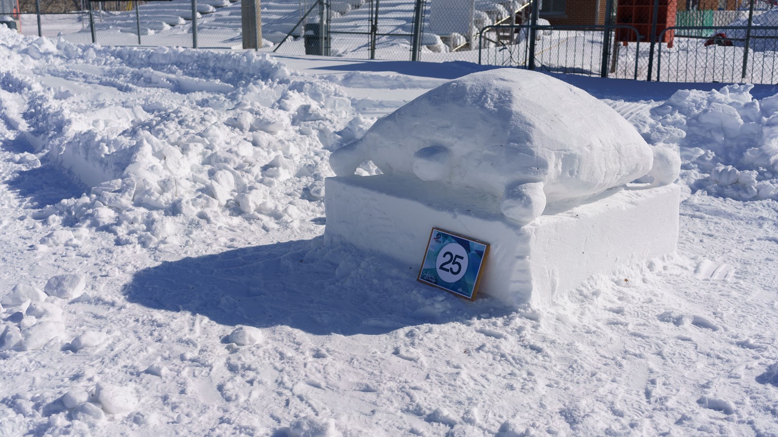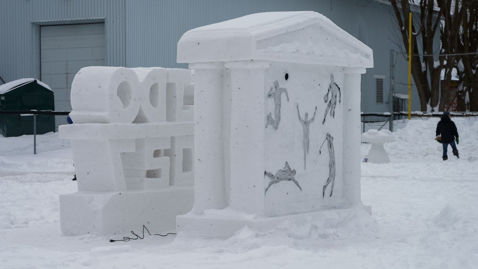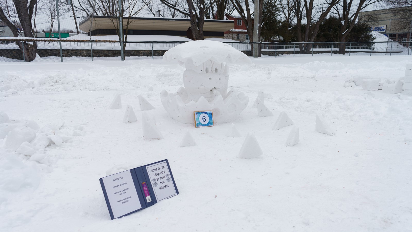 Familles et ami se sont réunis autour de bloc de neige pour créer des oeuvres éphémères. Certains ce sont découvert un nouveau talent, comme c'est le cas pour les artistes à l'origine de l'oeuvre « Sors de ta coquille et sois toi-même » pour qui c'était une première expérience.