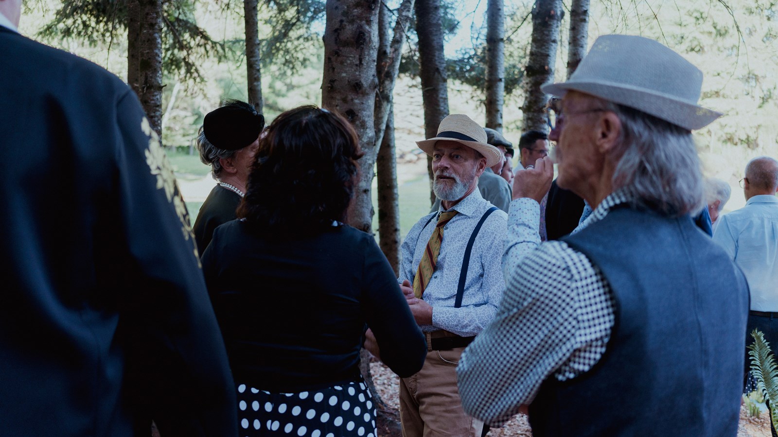 Par la suite, une meneuse de jeu emmène les spectateurs sur le site fictif du drame où l'on rencontre un témoin, Rosario Fortin, un des seuls catholique français de ce coin anglophone et protestant. Le public se sépare alors en deux groupes pour marcher dans le bois et ramasser des pièces à conviction.