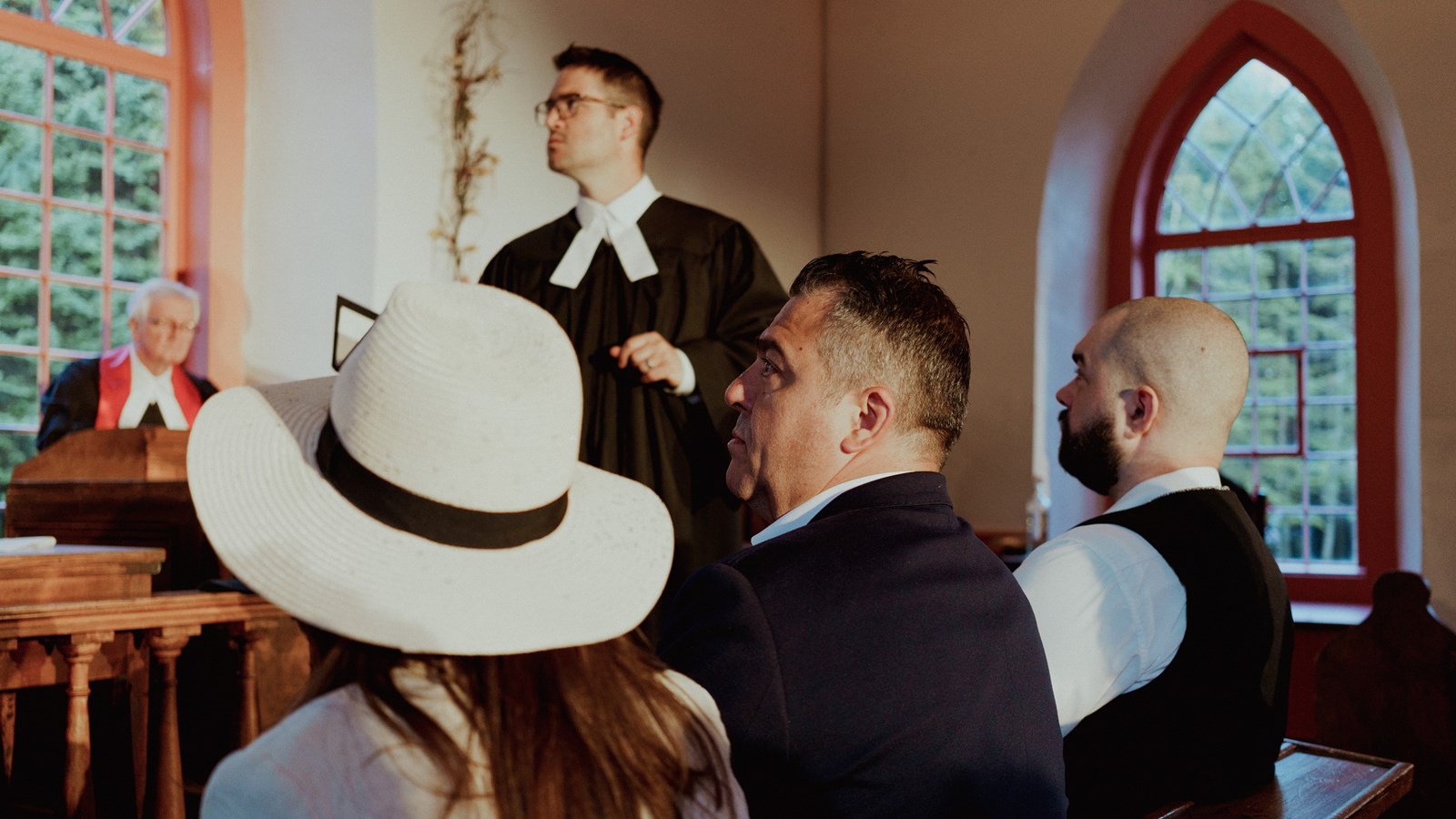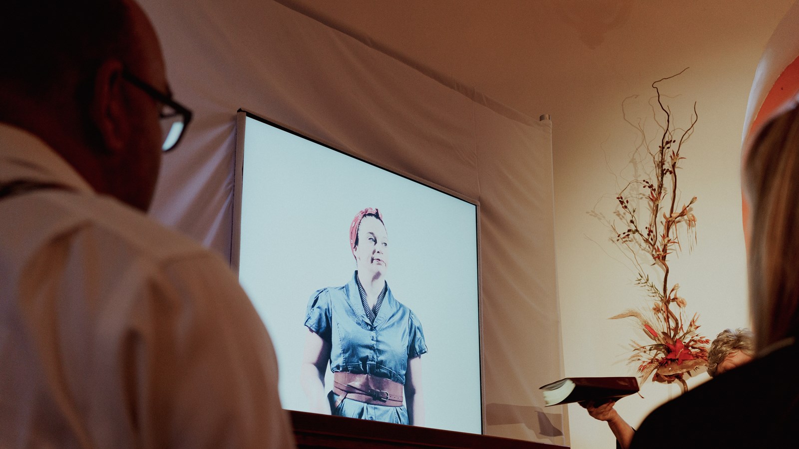 Par exemple, dans l'église, il y a un écran de sept pieds où apparaissent tous les témoins qui ont été préalablement filmés. Et les avocats, présents dans la salle, interagissent avec les enregistrements à l’écran.