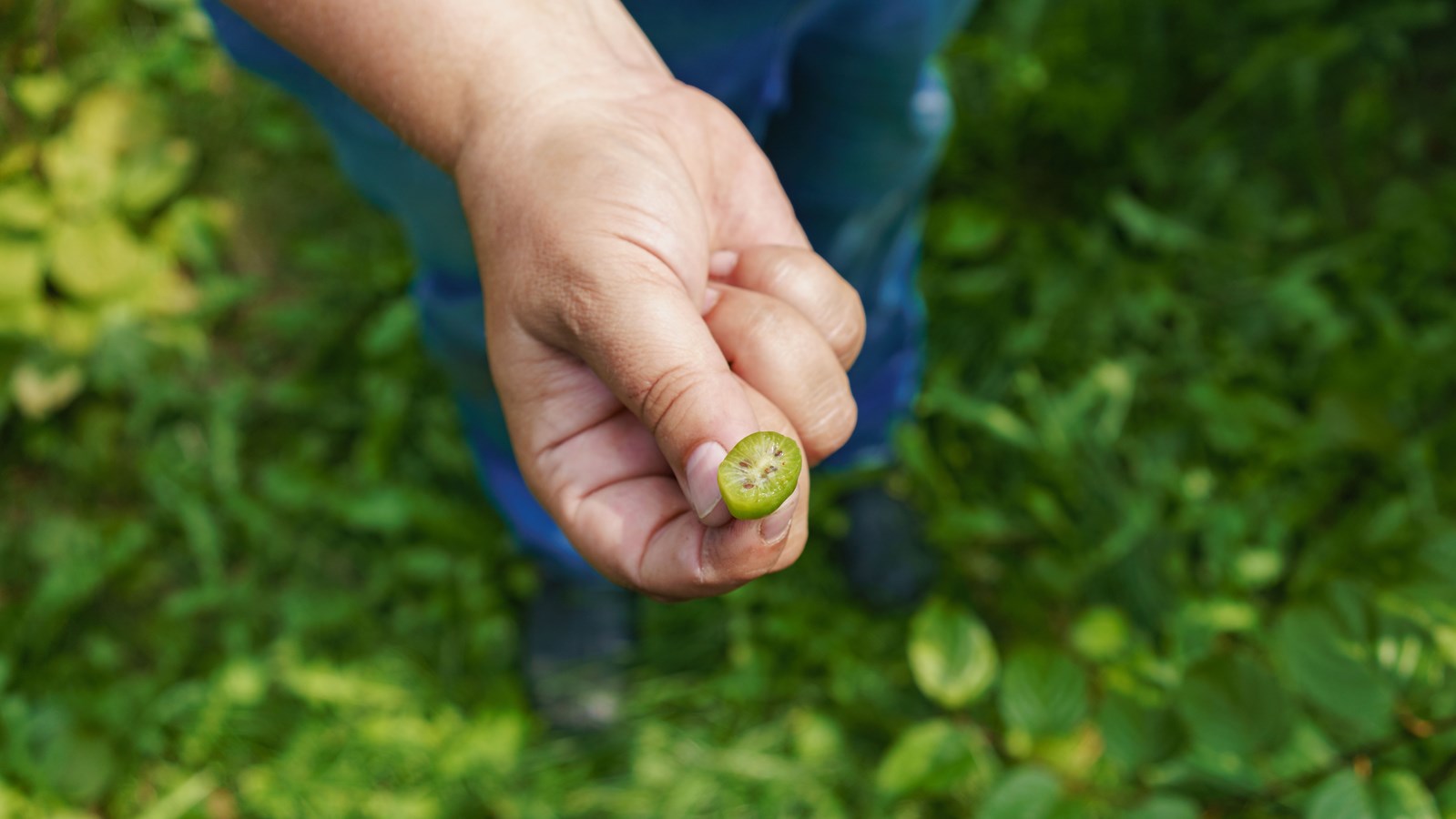 À défaut d’être poilus et gros, ce petit fruit vert a la même texture et le même goût que les kiwis que l’on trouve habituellement en supermarché. Ils sont un peu plus doux.