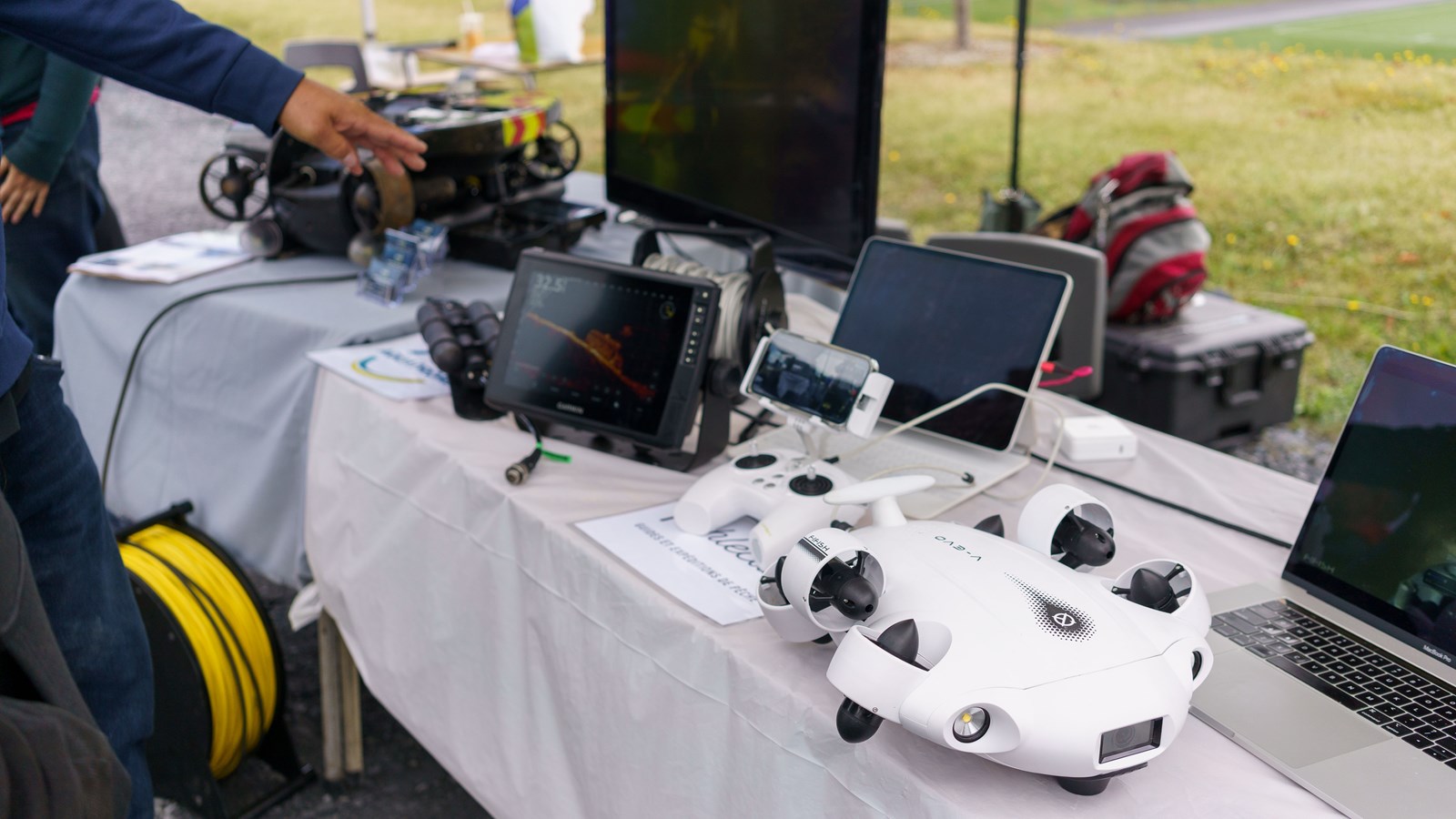 Parmi les drones présentés, on retrouve de grands modèles utilisés en agriculture, d’autres plus petits qui servent à la recherche et à la cartographie. Des drones sous-marins étaient également exposés.