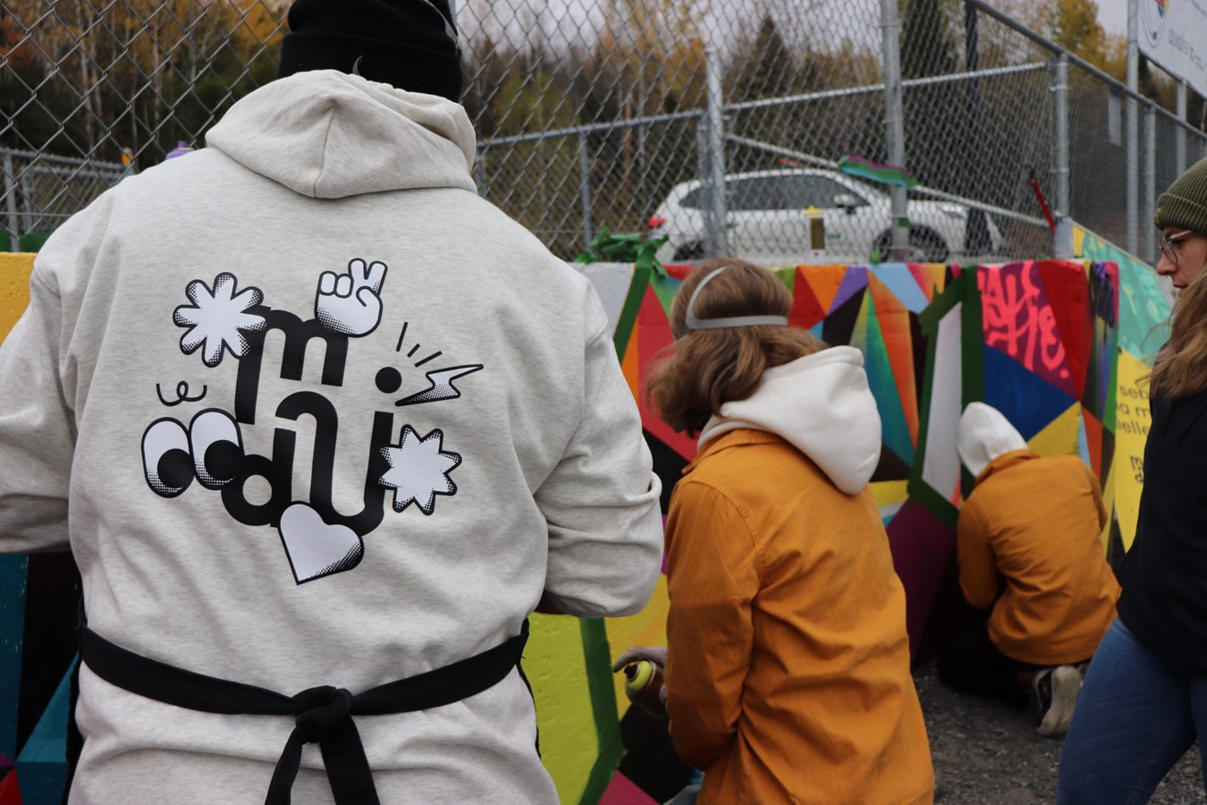 Le second volet, réalisé en peinture en aérosol, prend la forme d’une murale vibrante qui reflète l’énergie, la diversité et l’appartenance des jeunes à leur milieu. Cette murale a été réalisée par des jeunes qui fréquentent la MDJ Beauce-Centre et la Polyvalente St-Francois. Durant leur processus créatif, ils se sont laissés guider par Yann Lemieux, un artiste peintre professionnel établi à Québec, qui est reconnu pour ses performances en direct et son approche inclusive de la création. Son travail met de l’avant le geste créatif comme moteur d’engagement personnel et collectif.