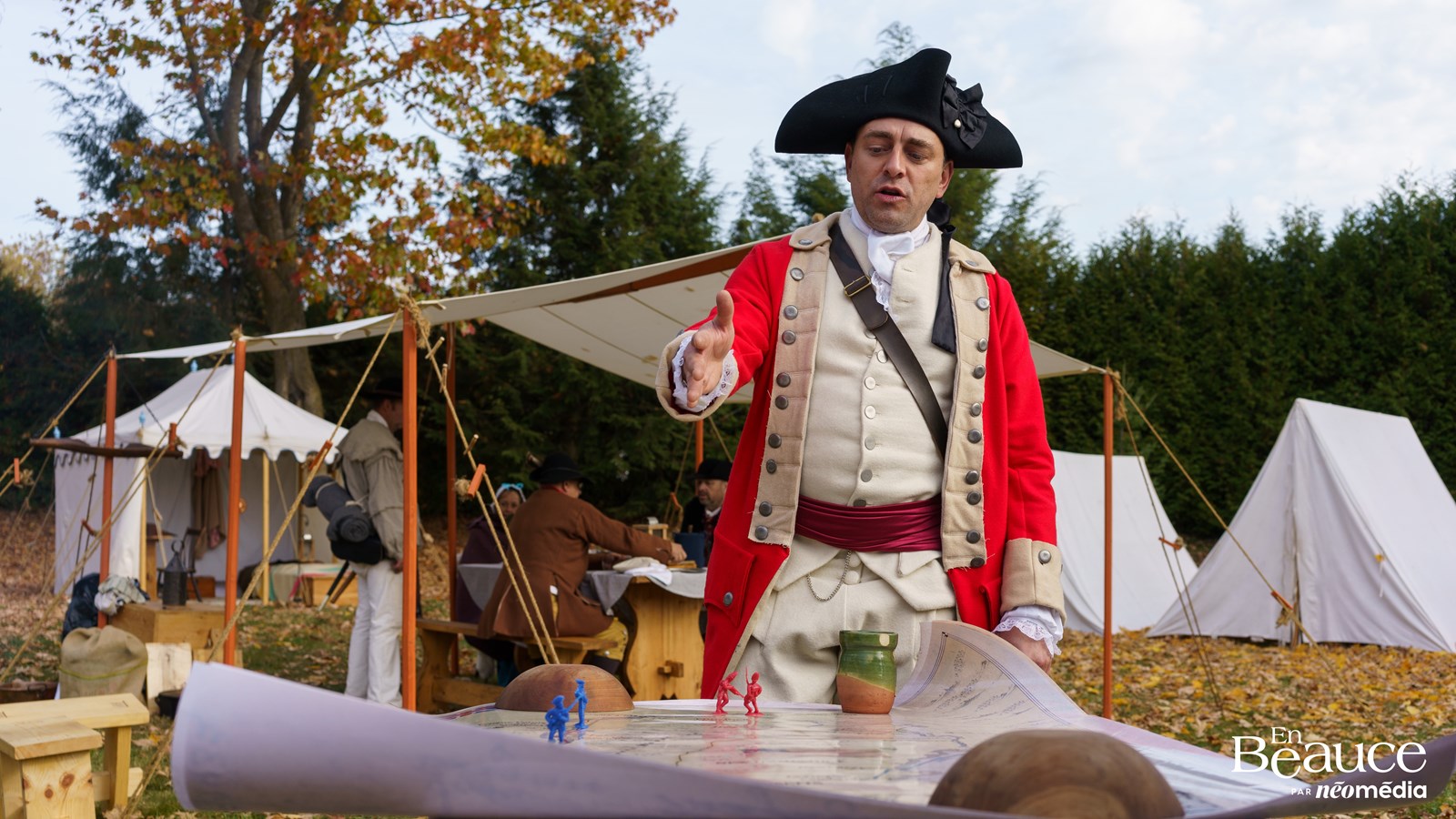 À l’aide de cartes du territoire, ils expliquent la trajectoire de Benedict Arnold ainsi que les conséquences sur les Beaucerons. Par exemple, on apprend qu’à la suite du passage de cet homme en Beauce, le clergé et le gouverneur du Canada, Guy Carlton, vont imposer la loi martiale. « On va imposer des conditions restrictives au villageois de Saint-François (aujourd’hui Beauceville) de 1778 jusqu'à 1783, à la fin de la guerre. Donc on va imposer des couvre-feu, du rationnement sur la nourriture, puis on va également contrôler les allées venues des habitants. » Il s’agissait d’une forme de punition pour les Beaucerons qui ont collaboré avec Arnold lors de son passage.