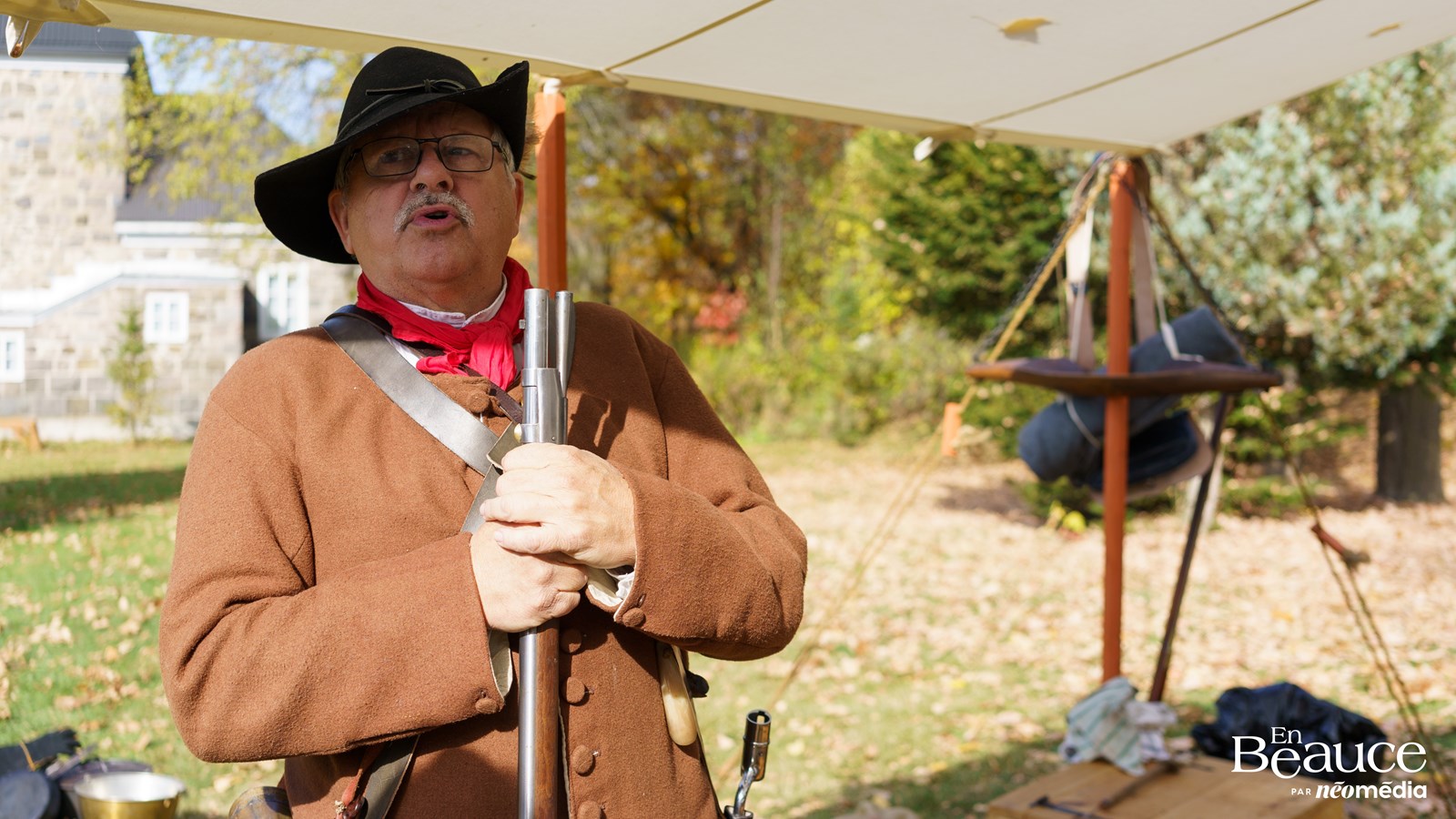 « On est un groupe de passionnés qui, avec nos uniformes et nos équipements de l'époque, veulent présenter cette portion de l'histoire qui est très importante pour les Beaucerons, malgré que ce soit une guerre de révolution américaine, ça a eu des impacts significatifs sur nos ancêtres. C’est ce qu’on veut commémorer cette année avec le 250e », a expliqué Frédéric Paré, président de la Société Historique 1775-1783.