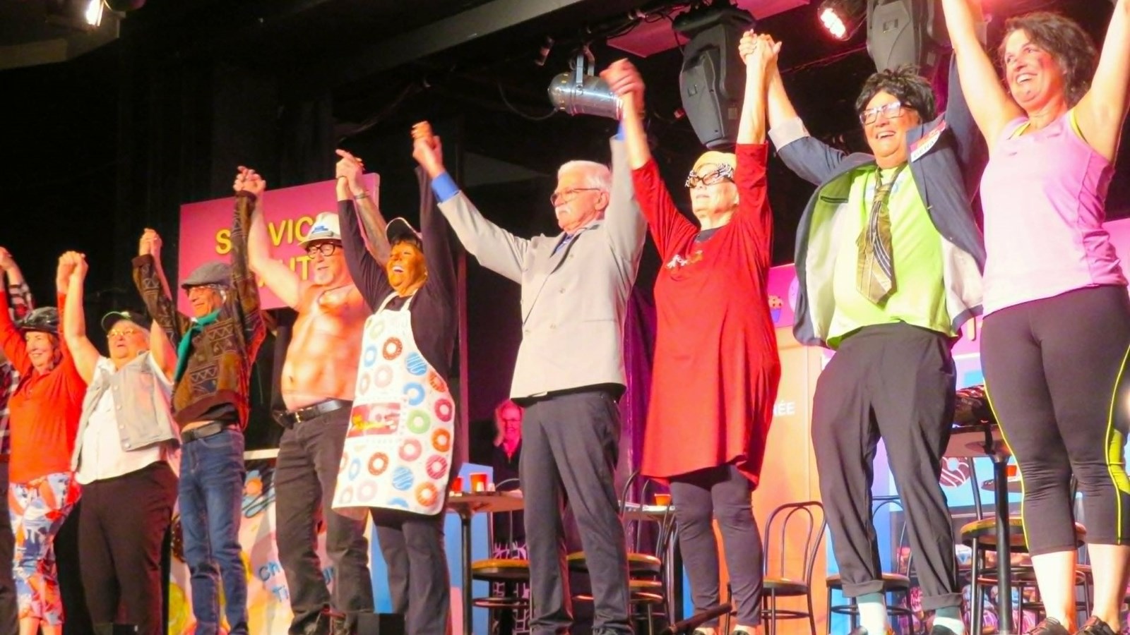 La distribution comprenait une quinzaine de membres de la FADOQ, qui se sont prêtés à cet exercice théâtral.