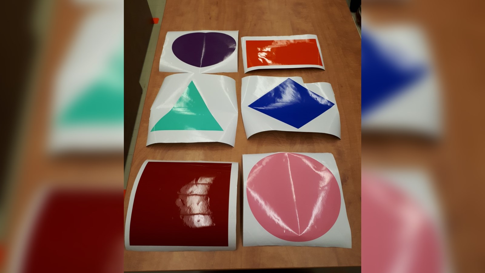 - Des autocollants pour le sol avec des formes et des couleurs différentes pour l’identification des places des élèves en classe et pour l’apprentissage des couleurs et des formes.