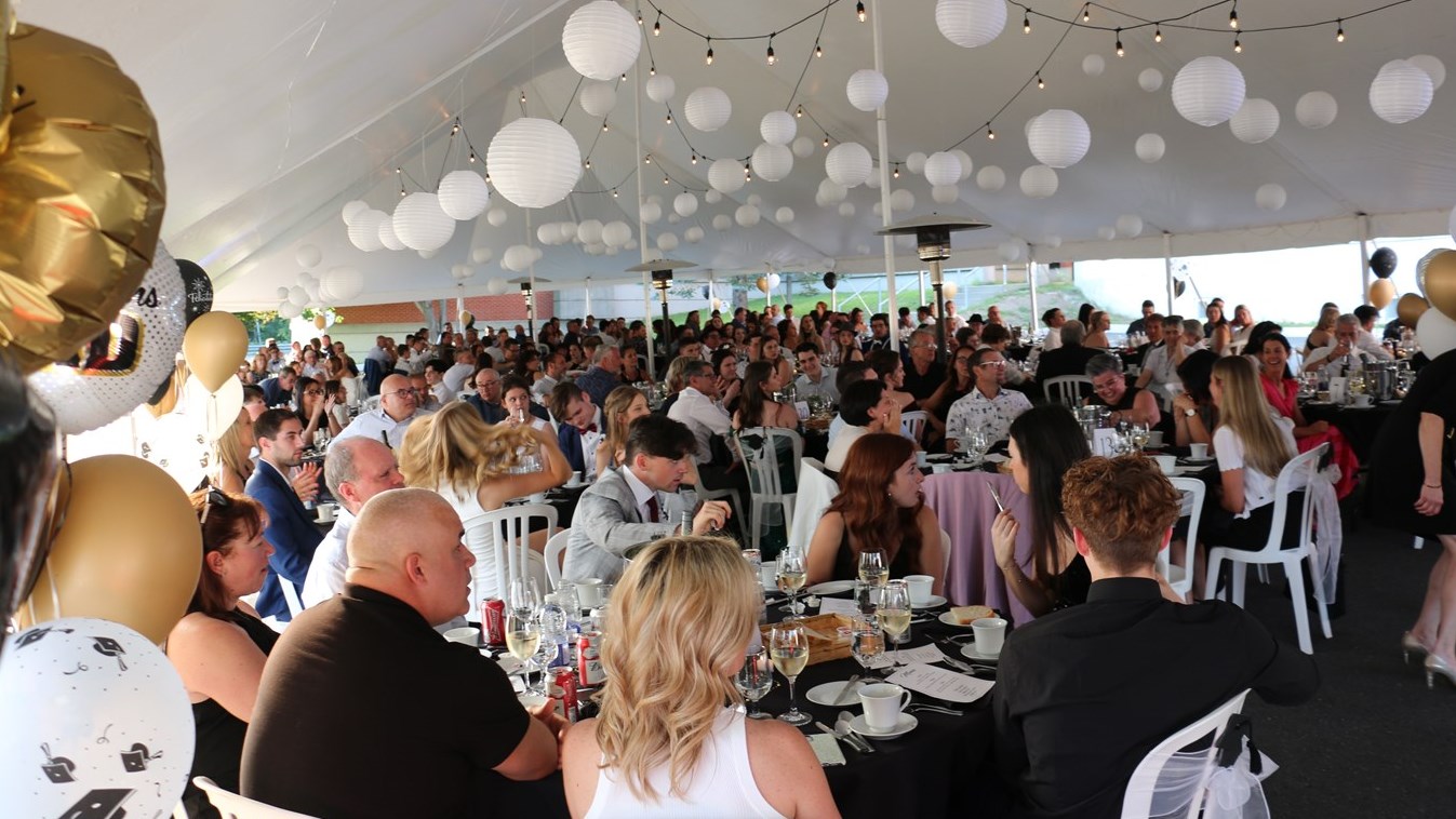 Les finissants ont ainsi fêté leur bal sous un chapiteau décoré pouvant accueillir jusqu'à 250 personnes directement sur le terrain de l'école Jésus-Marie. Tous les éléments distinctifs d'un bal des finissants étaient là: tapis rouge, animateurs, invités d'honneurs, discours, photographe, repas, et, évidemment, la traditionnelle soirée dansante avec DJ.
