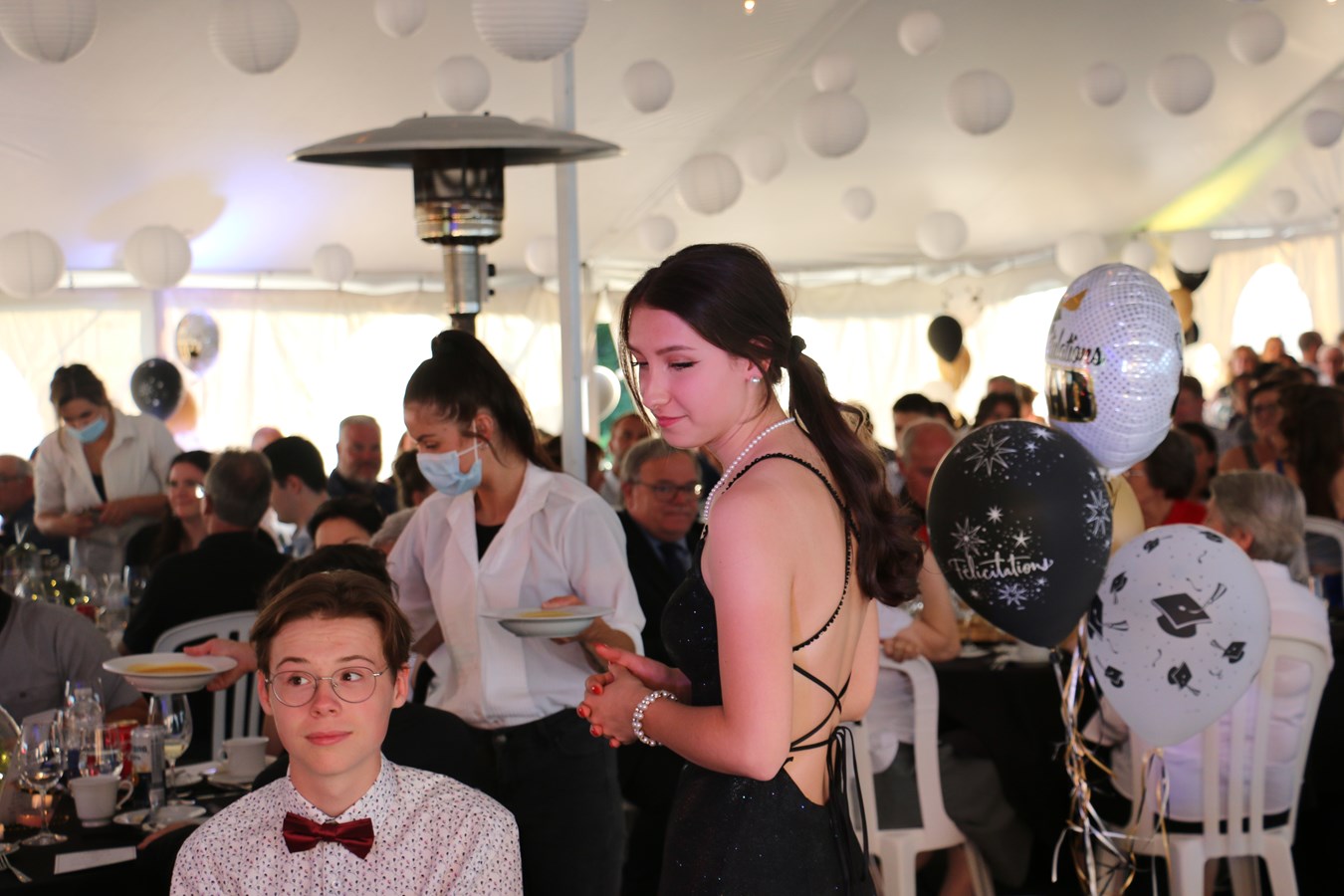 Au total, 227 personnes étaient rassemblées sous un chapiteau décoré pour l’occasion et installé directement sur le terrain de l’établissement. Parmi eux, 61 finissants ont pu profiter de l’événement grâce aux installations spécifiques tels que tapis rouge, animateurs, invités d'honneurs, discours, photographe et repas.