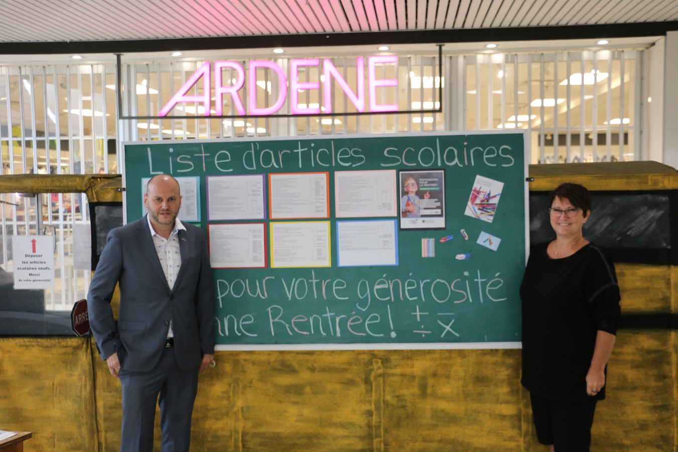 Pour ceux qui ne connaissent pas les besoins, un panneau d'affichage présente la liste des articles recherchés. Précisons que seul les articles scolaires neufs sont acceptés. Nous acceptons uniquement les articles scolaires neufs. Il est aussi possible de donner de l'argent qui sera utilisé pour acheter ce qui manque.