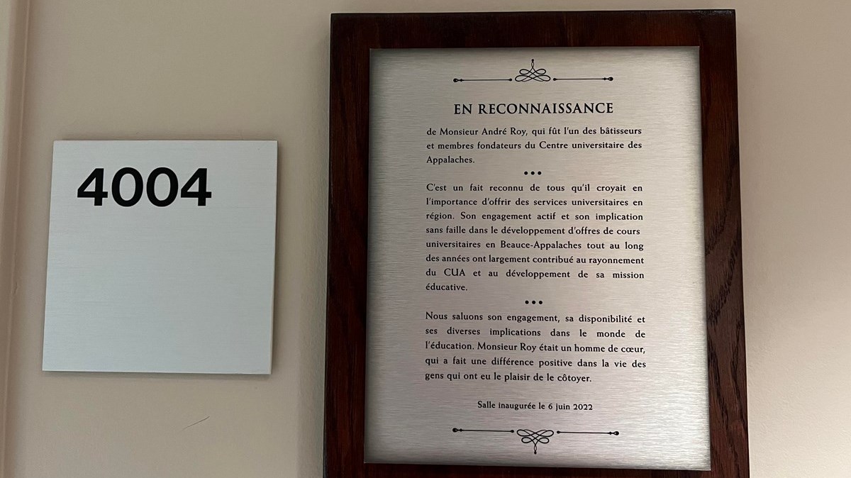 André Roy, qui est décédé en 2019, fût l’un des bâtisseurs et membres fondateurs du Centre universitaire des Appalaches. « C’est un fait reconnu de tous qu’il croyait en l’importance d’offrir des services universitaires en région. Son engagement actif et son implication sans faille dans le développement d’offres de cours universitaires en Beauce-Appalaches tout au long des années ont largement contribué au rayonnement du CUA et au développement de sa mission éducative », a déclaré la présidente du conseil d'administration du CUA, Marielle Fecteau.