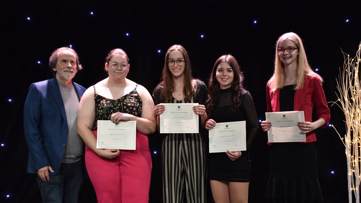 Quatre bourses Coup de pouce d’une valeur de 250 $ ont également été attribuées aux étudiantes nouvellement admises Alycia Carter, Laurence Latulippe, Marie-Anne Martel et Anne-Julie Roy pour les encourager à poursuivre leurs études au Cégep. Ces bourses sont offertes par la Fondation du Cégep Beauce-Appalaches.