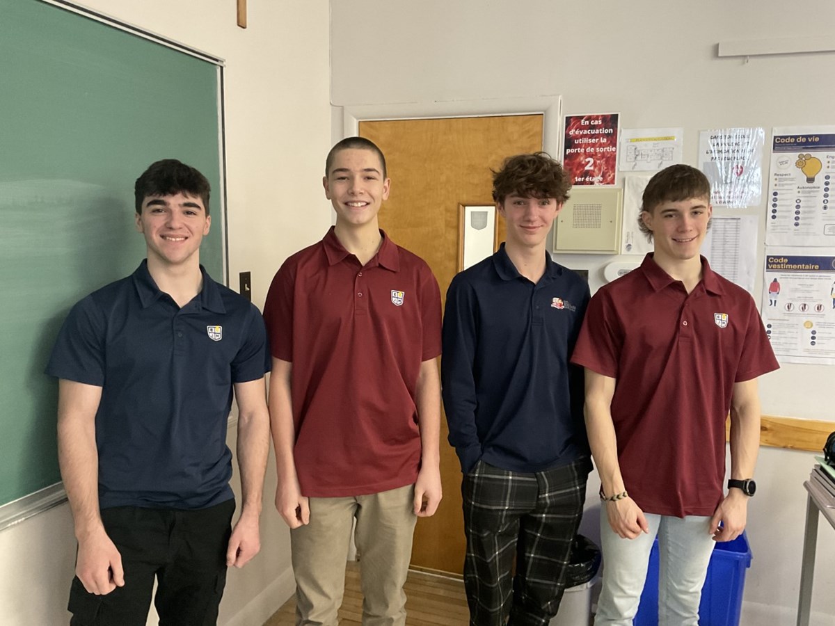 École Jésus-Marie de Beauceville : Olivier Pruneau, Marc-Antoine Poulin, Logan Fortin et Isaak Carrier