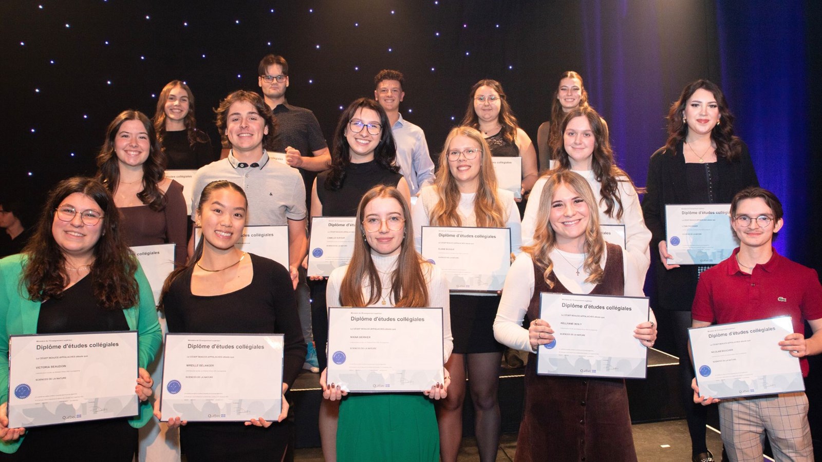 Les bourses de l’Excellence scolaire, secteur préuniversitaire et technique, ont été remises à Virginie Pouliot (Sciences de la nature) et Léa Bernard (Soins infirmiers) qui a également reçu une bourse Méritas par programme. Les bourses Progrès scolaire ont été octroyées aux finissantes Julia Audet (Arts, lettres et communication profil Création et médias) pour le secteur préuniversitaire et Savanah Bisson (Éducation à l’enfance) pour le secteur technique. Kim Viau (Soins infirmiers) et Keven Lambert (Informatique) se sont distingués en recevant chacun une bourse d’Engagement ainsi que la Médaille du Lieutenant-gouverneur pour la jeunesse.