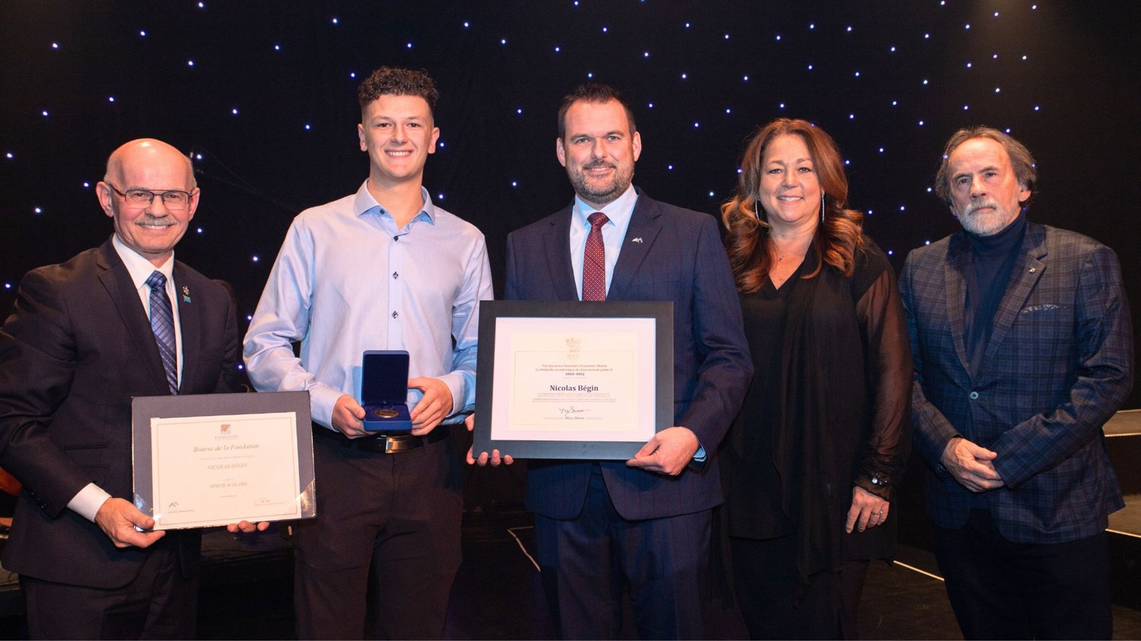 Nicolas Bégin, finissant en Sciences de la nature, s’est distingué en recevant la Médaille académique du Gouverneur général et la bourse du Mérite scolaire.