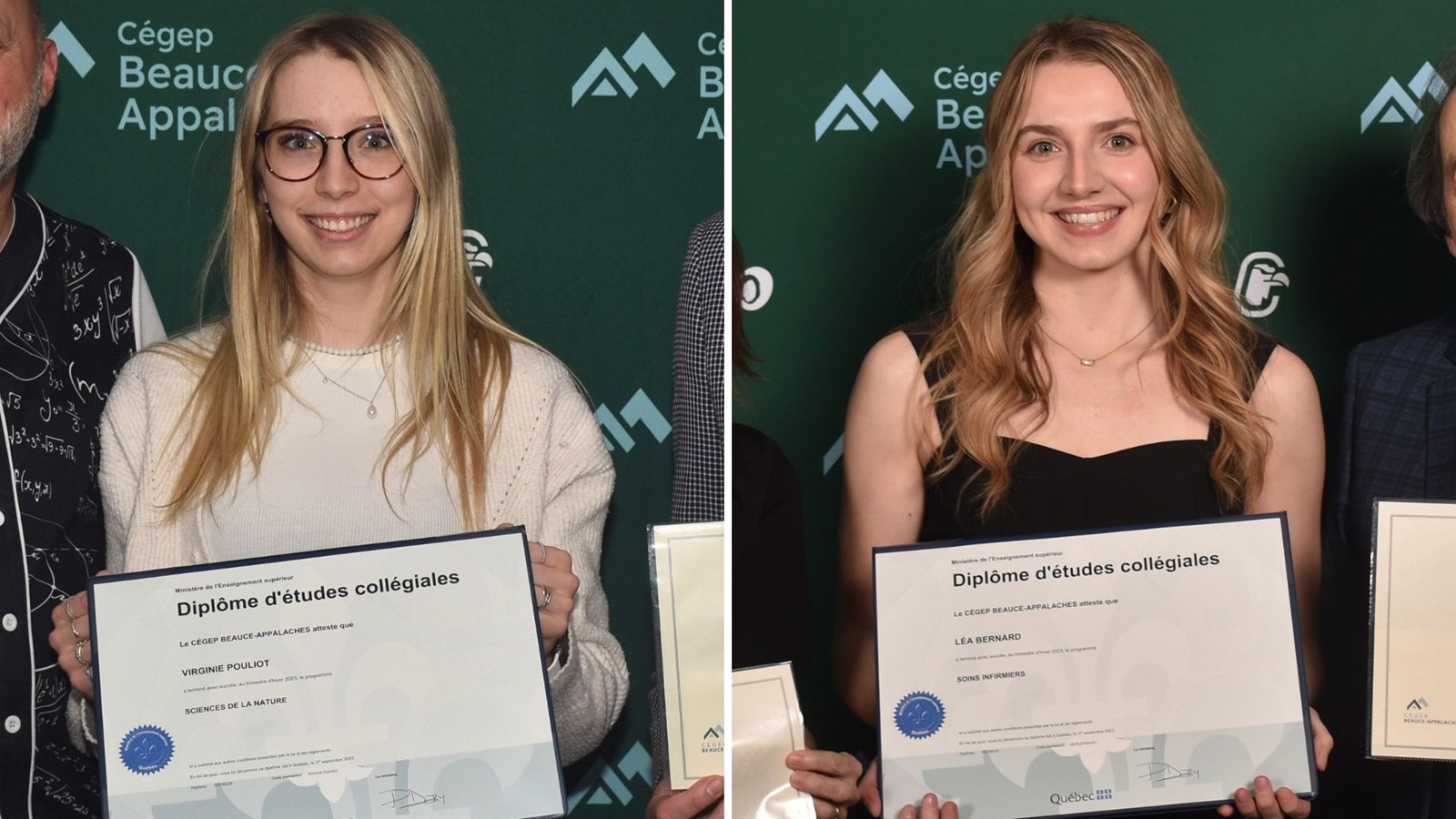 Les bourses de l’Excellence scolaire, secteur préuniversitaire et technique, ont été remises à Virginie Pouliot (Sciences de la nature) et Léa Bernard (Soins infirmiers).