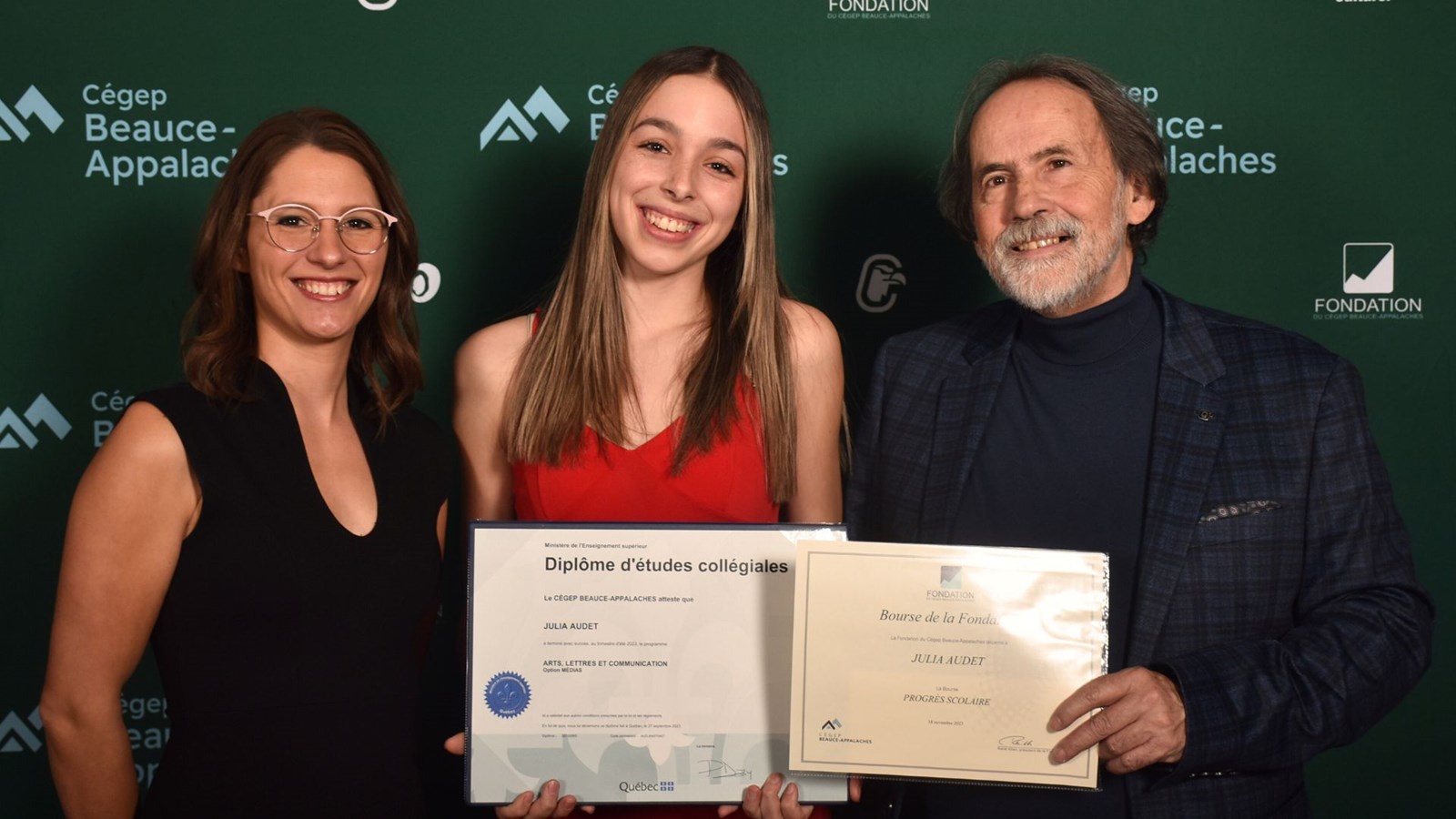 La bourse Progrès scolaire a été octroyée à Julia Audet (Arts, lettres et communication profil Création et médias) pour le secteur préuniversitaire.