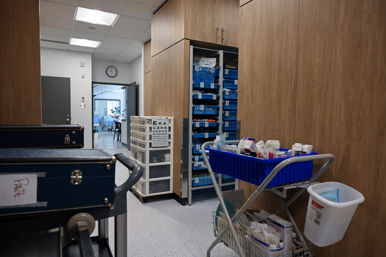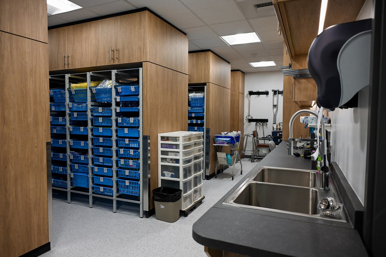 Des améliorations ont aussi été effectuées dans le secteur de dépôt du département de Soins infirmiers avec l'installation d'un système de rangement équipé de paniers pour une gestion optimale des produits.