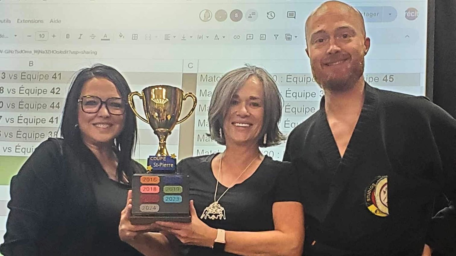 Ainsi, la Coupe St-Pierre a été créée et deviendra le prix que se disputeront les équipes. En clin d’œil à l’intérêt de Mme St-Pierre pour l’impression 3D, des écussons imprimés à l’aide d’une imprimante 3D ont été ajoutés à la base de la coupe pour nommer les équipes gagnantes de chaque édition. Dorénavant, les équipes qui remporteront la Coupe St-Pierre pourront l’exposer dans leur école un certain temps.