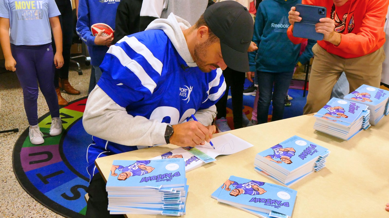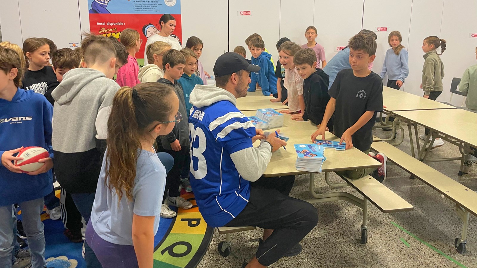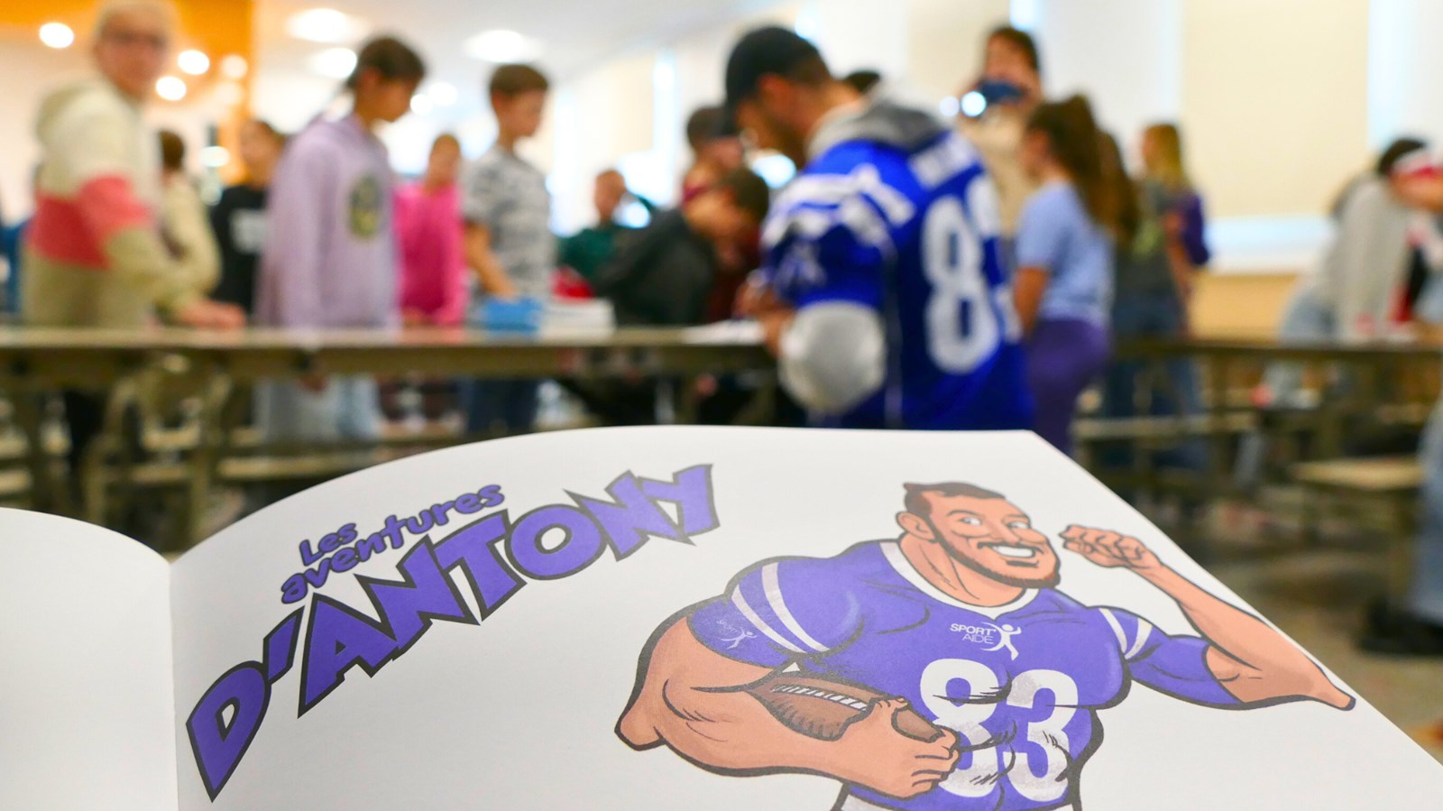 Par la suite, les enfants ont pu poser plusieurs questions au champion du Super Bowl 2021, allant de son ressenti en tant que joueur professionnel, à ses études ou encore à ses amitiés dans le sport. Le sportif a ensuite donné de son temps pour faire des signatures sur des chandails, des ballons, mais aussi sur les exemplaires de sa BD.