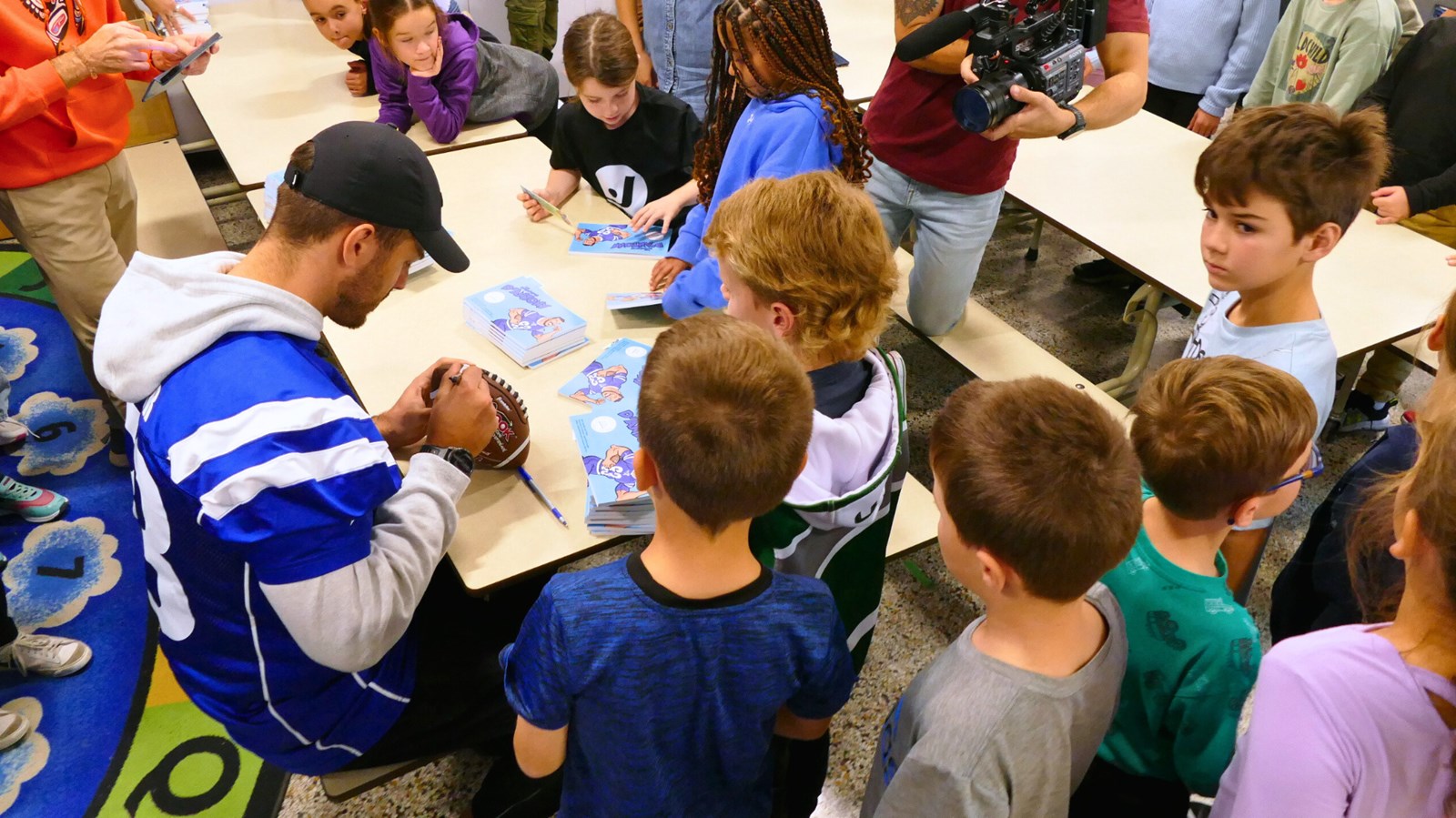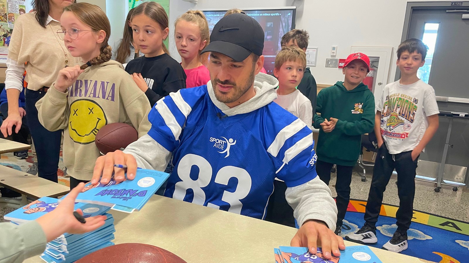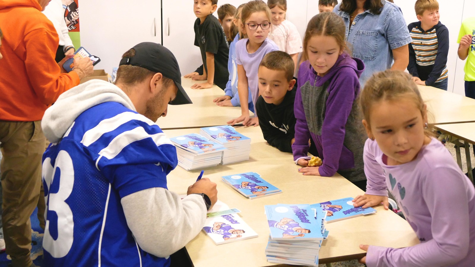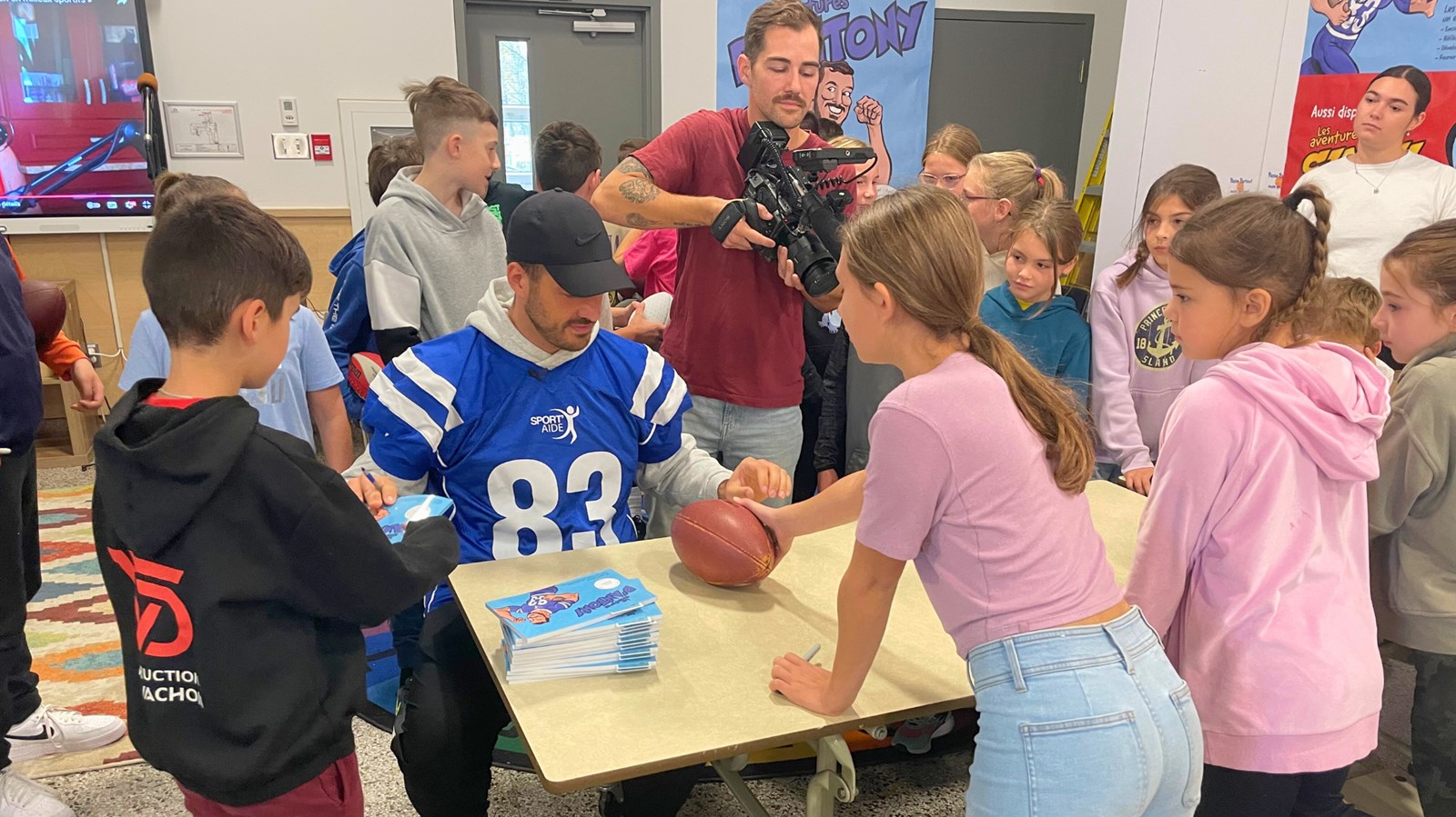 Par la suite, les enfants ont pu poser plusieurs questions au champion du Super Bowl 2021, allant de son ressenti en tant que joueur professionnel, à ses études ou encore à ses amitiés dans le sport. Le sportif a ensuite donné de son temps pour faire des signatures sur des chandails, des ballons, mais aussi sur les exemplaires de sa BD.