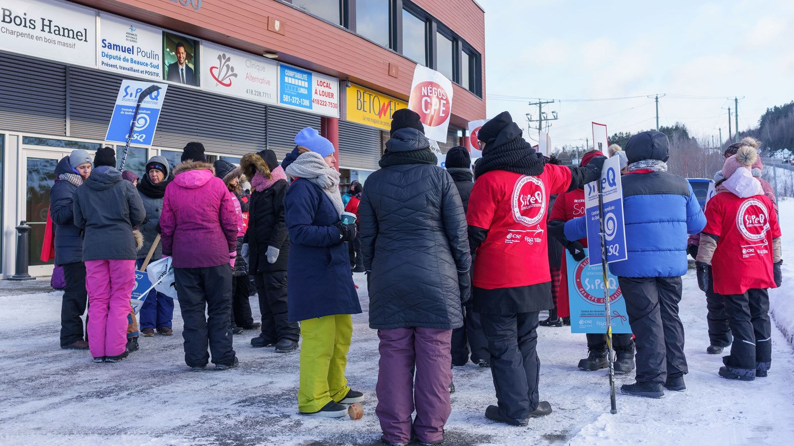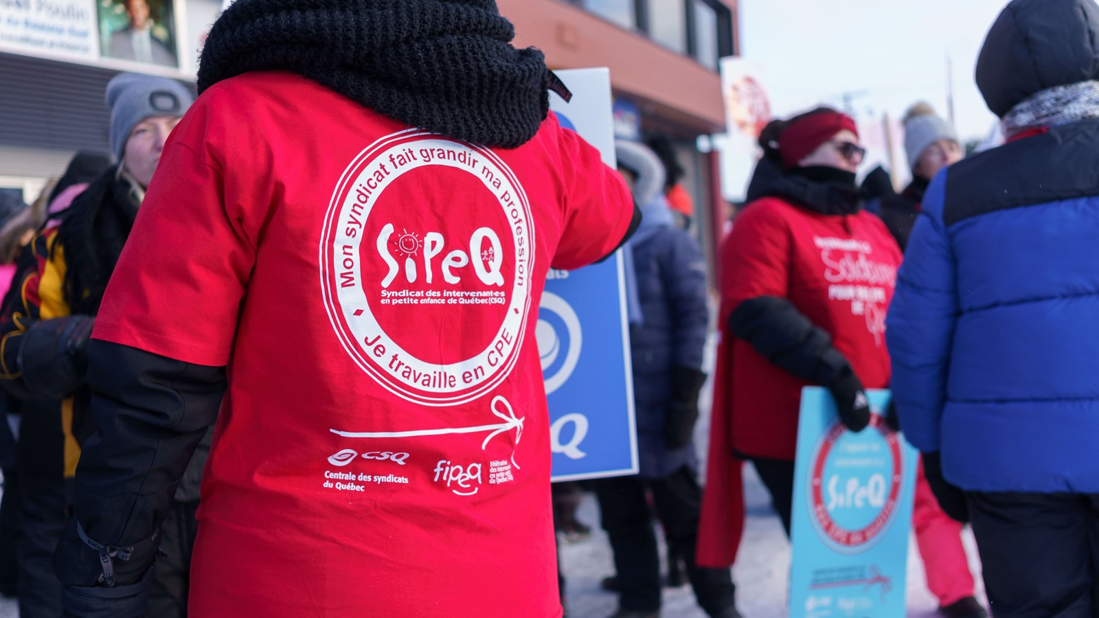 « On ne veut pas la lune, on veut juste ce qu’on mérite », disent les membres du Syndicat des intervenants et intervenantes en petite enfance de Québec (SIPEQ) qui manifestaient ce vendredi matin devant le bureau du député de Beauce-Sud, Samuel Poulin.