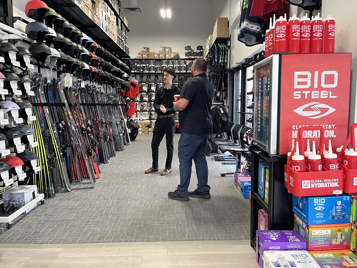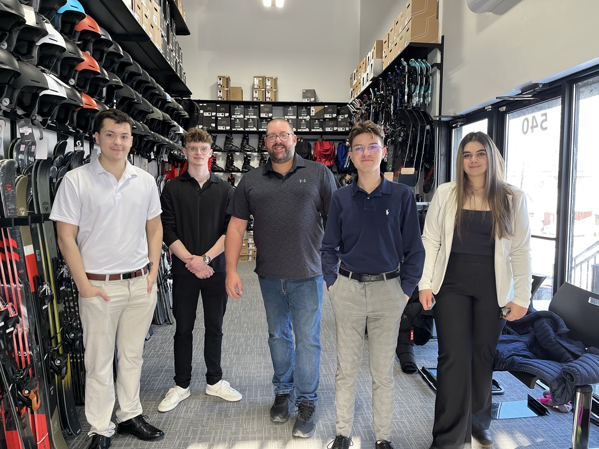 Du 28 novembre au 6 décembre, 17 élèves ont collaboré de près avec Dave Vachon, copropriétaire chez Ambiance Sports et son équipe, pour y développer leurs techniques de vente. Lors de scénarios de vente fictifs, à tour de rôle, les élèves ont expérimenté le rôle de conseiller aux ventes, tandis que monsieur Vachon jouait le rôle de client voulant acheter une nouvelle paire de skis.