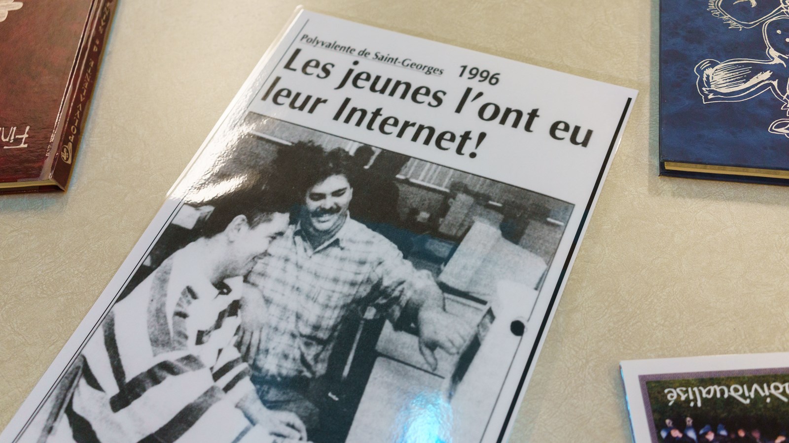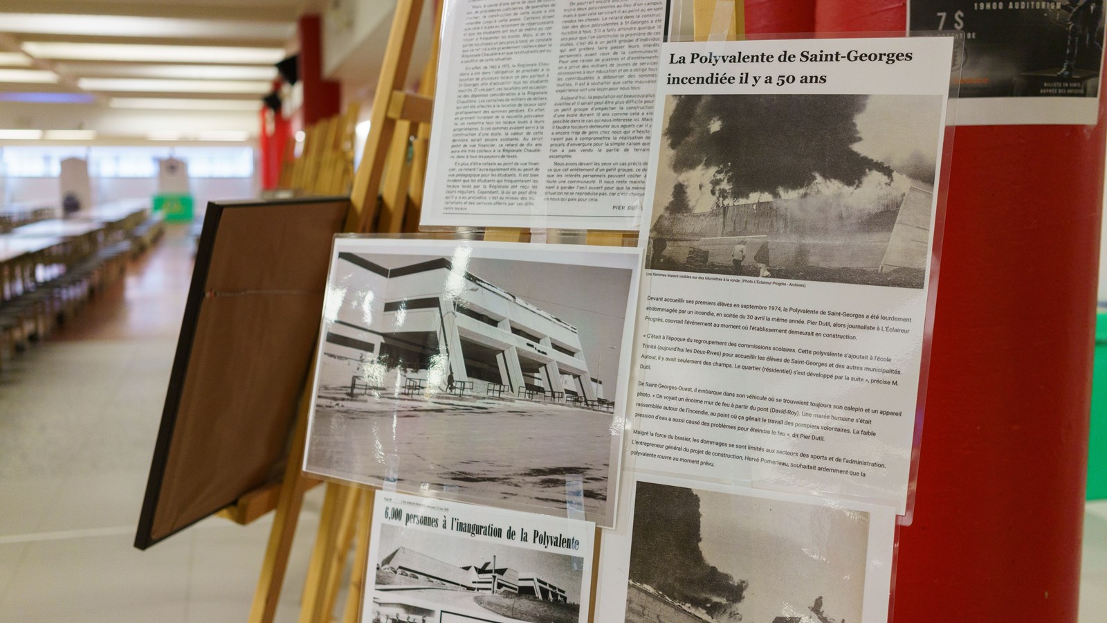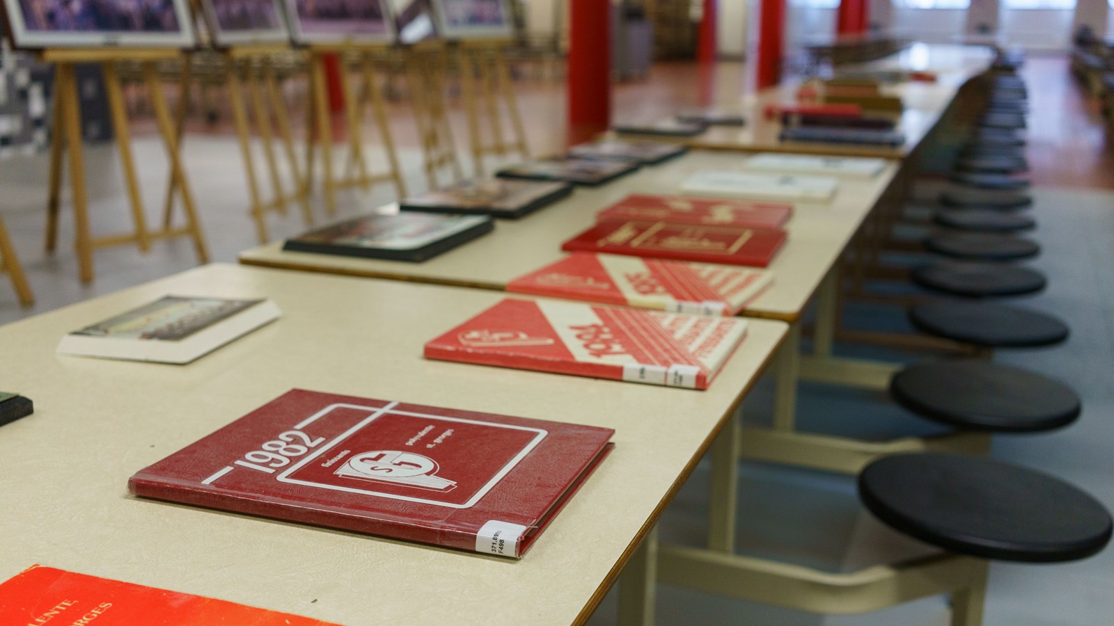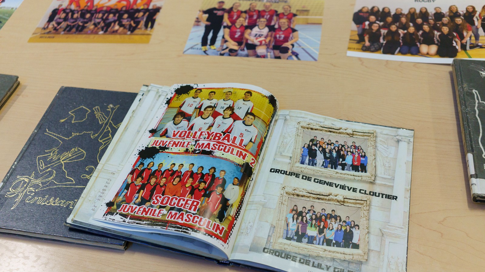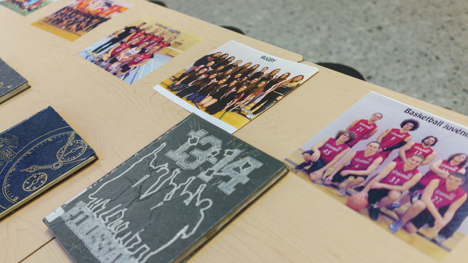 Des albums souvenirs des années passées ainsi que des articles de journaux retraçant des moments importants de la Polyvalente étaient disponibles sur place.
