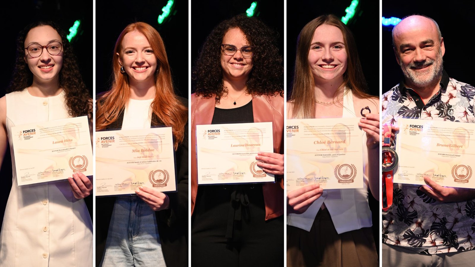 Laura Hétu (Sciences de la nature) s’est distinguée dans la catégorie Personnalité engagée pour son implication. Laurine Hoareau (Soins infirmiers) a été reconnue dans la catégorie Personnalité persévérante. Chloé Bernard (Techniques de santé animale) s’est illustrée dans la catégorie Entraide et justice, Sara-Maude Doyon (Techniques de santé animale) dans la catégorie Entrepreneuriat, économie et justice et Mia Bolduc (Techniques de comptabilité et de gestion) dans la catégorie Santé et saines habitudes de vie. Enfin, Bruno Gilbert, enseignant en biologie, a reçu la médaille de reconnaissance Forces AVENIR dans la catégorie Personnel engagé.