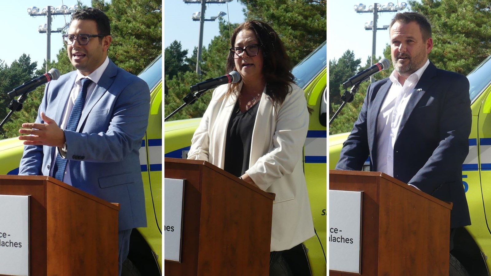 Dans l'ordre habituel, le député de Beauce-Sud, ministre responsable de la Jeunesse et ministre délégué à l’Économie et aux Petites et Moyennes Entreprises, Samuel Poulin; la directrice générale du Cégep Beauce-Appalaches, Caroline Bouchard; le directeur des études et de la vie étudiante, Jean-Philippe Vachon.