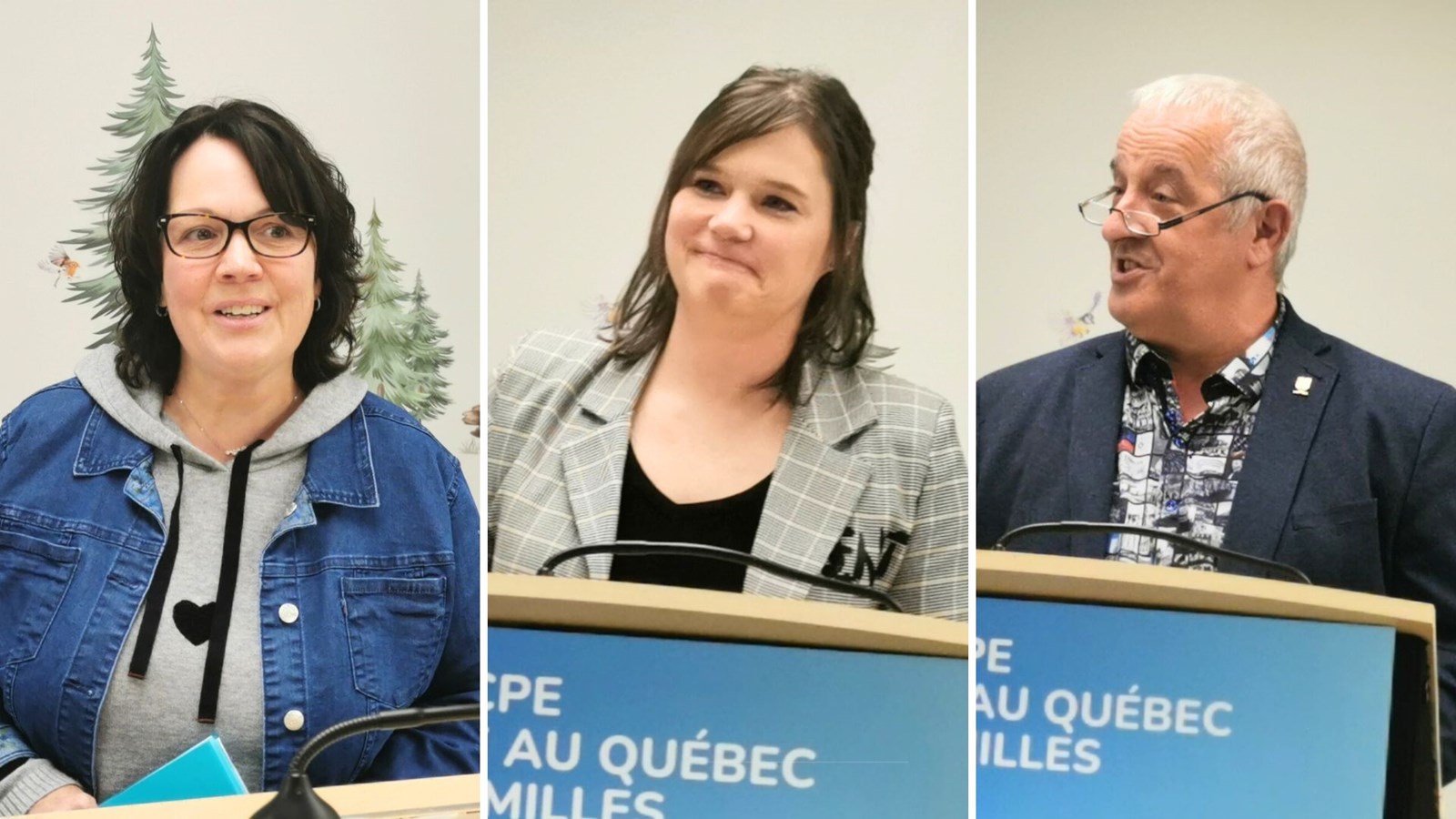 De gauche à droite, Chantal Gamache, directrice générale du CPE Passe-Lacets, Andréanne Poulin, présidente du CPE, et Alain Maheux, maire de Saint-Prosper.