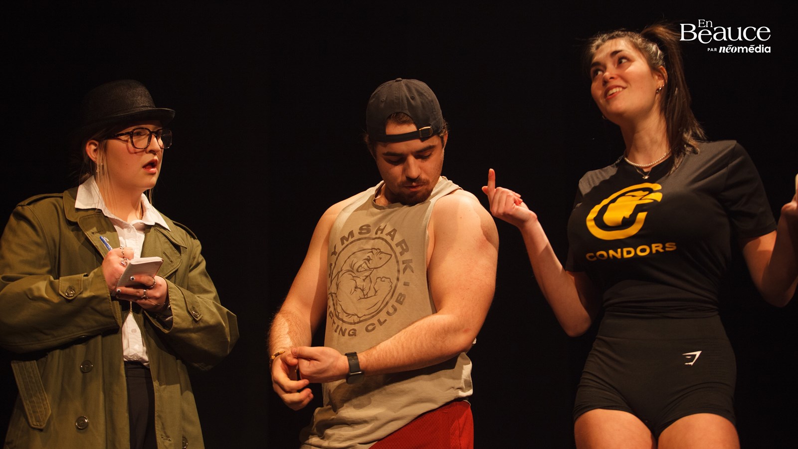Entre chaque numéro, la soirée était animée par une équipe étudiante composée d’Esteban Bolduc, Tristan Boulet-Dubois, Sarah-Maude Brassard, Florence Breton, Daphné Champagne, Raphaël Fourrier, Maika Gagné, Julia Lachance et Éloi Morin, avec des textes d’Harold Gilbert.