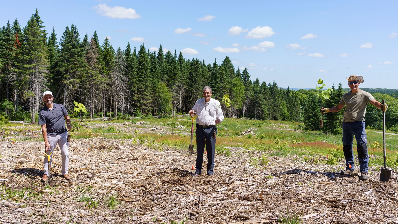 L’objectif de ce partenariat vise à aller au-delà de la plantation conventionnelle tout en diversifiant la sélection des essences plantées, principalement du feuillu. « Ici on a une superficie de trois hectares et on a reboisé pas loin de 3 000 plants feuillus. Environ 1 000 chênes rouges, un peu plus de 600 noyers noirs, 600 cerisiers tardifs, 500 érables à sucre, 500 érables rouges et un peu plus de 600 cèdres », a précisé Jérôme Lapointe, ingénieur forestier.