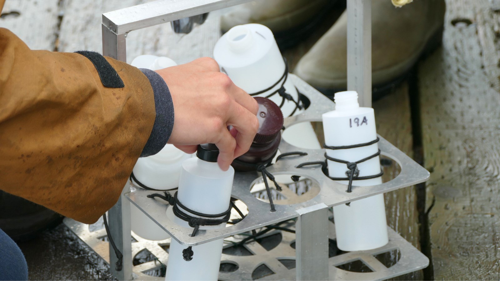Les équipes sur place doivent remplir un certain nombre de bouteilles afin de les envoyer en analyse.