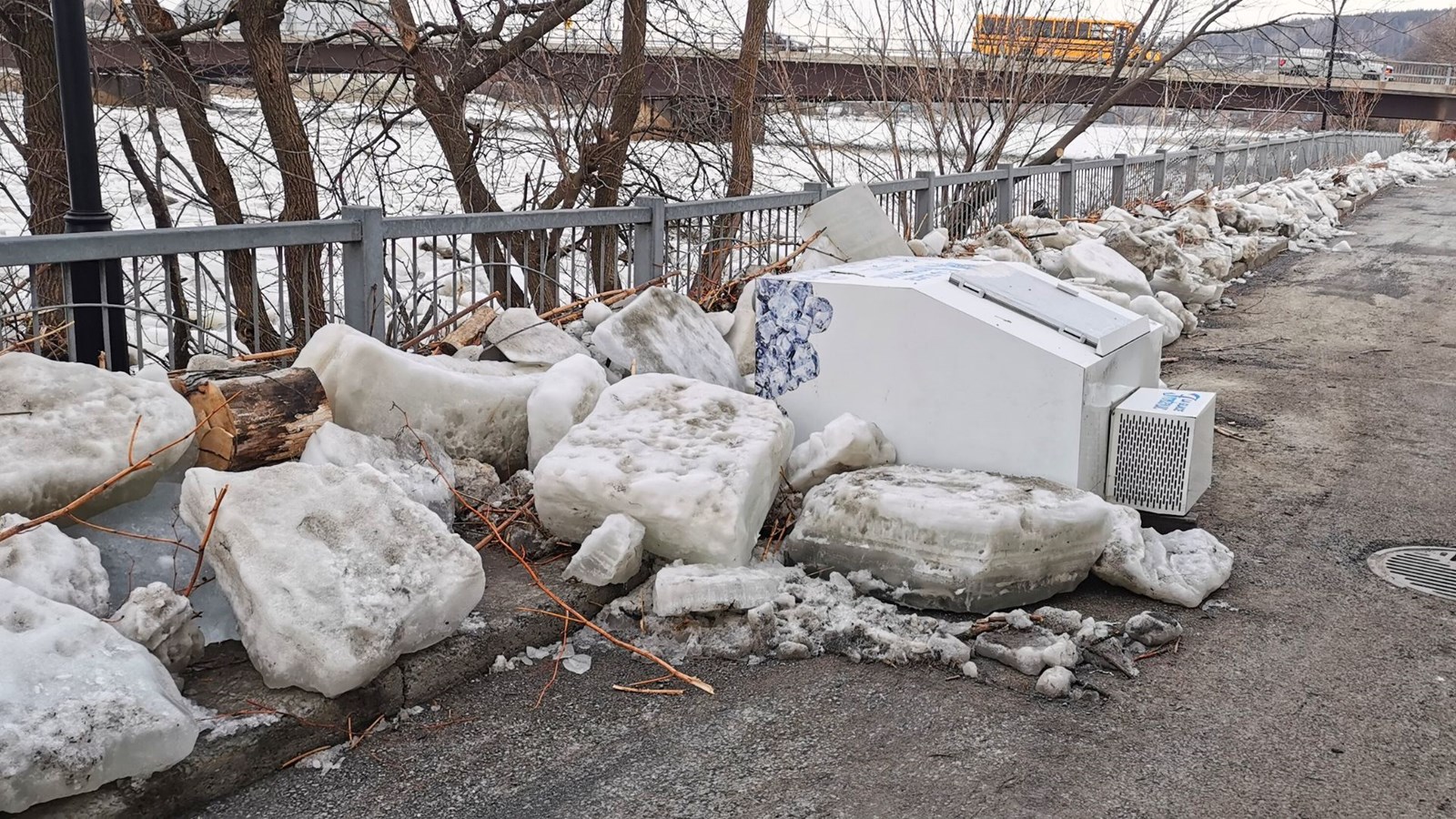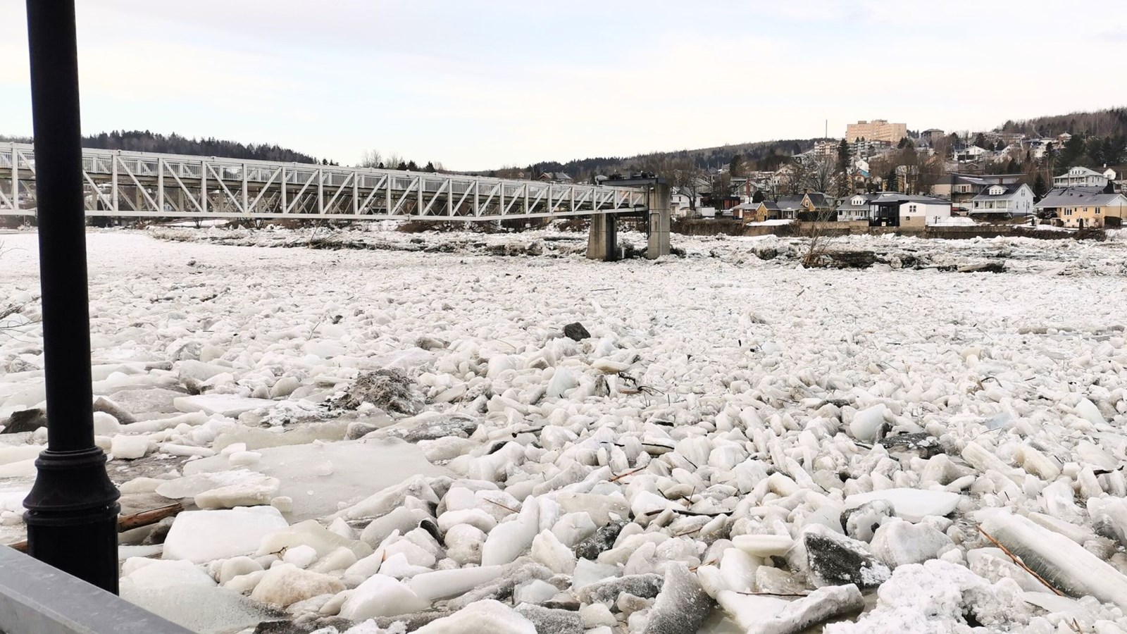 En effet, un embâcle est toujours présent au centre-ville, jusqu'à la sortie Nord, comme en témoignent les photos prises par EnBeauce.com à 7 h 45 ce matin.