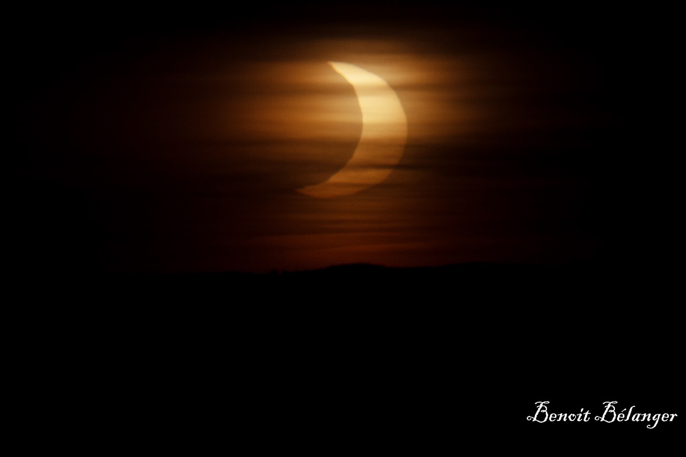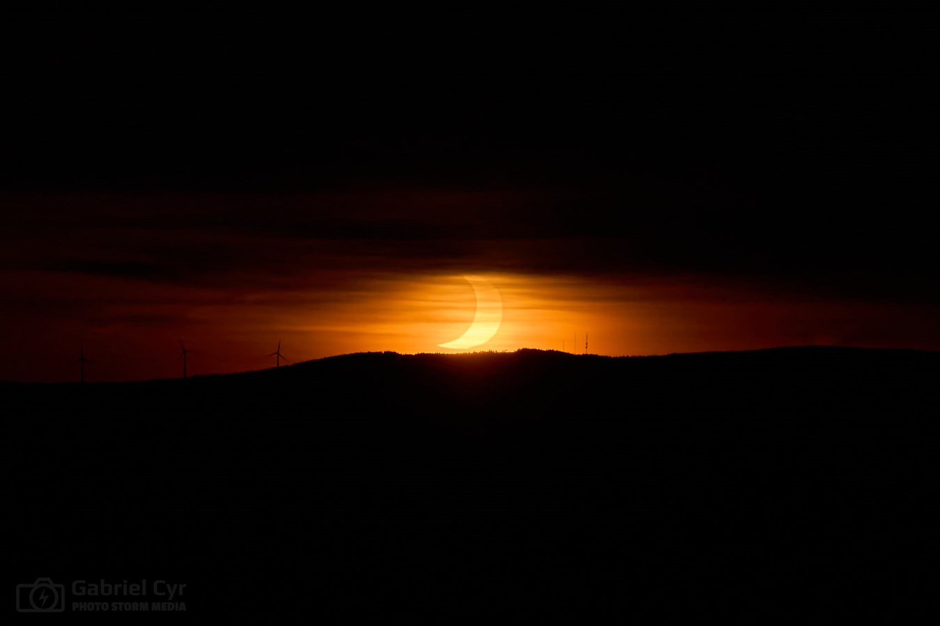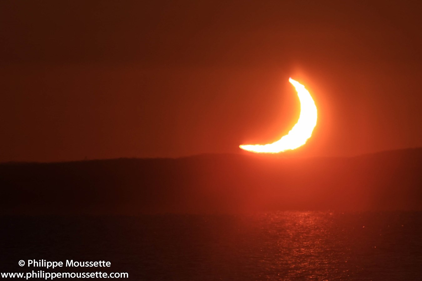 À Saint-Georges, la Lune a masqué jusqu’à 73 % du disque solaire, transformant brièvement le lever du soleil en un croissant lumineux.